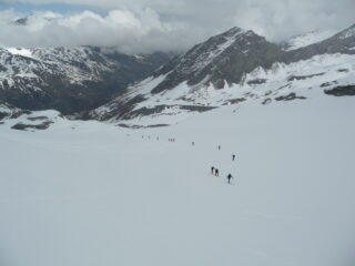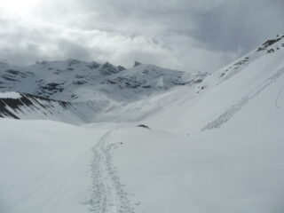 Stamattina schiarite e un pallido sole poi sempre peggio fino a prendere una discreta nevicata in vetta al secondo giro. Salito per la strada tagliando per sentiero e calzati gli sci a quota circa 2000m. Da li all’Alpe Forciaz qualche tratto su prati poi innevamento continuo. In basso neve molto bagnata e sfondosa in alto bella farina. Due giri nella parte alta e poi sopravvivenza nella parte centrale, dall’alpe gli sci tornano nello zaino.