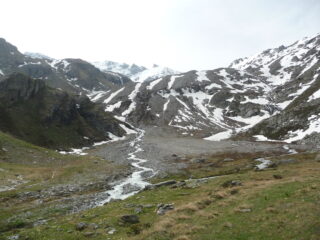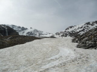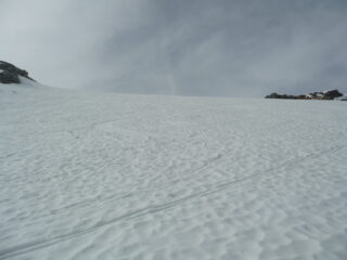 Gli sci si portano per circa 650m poi innevamento continuo ma sopratutto il fiume sta lavorando… In alto discreto rigelo (almeno meglio rispetto a ieri…). Discesa comunque discreta che con qualche metti leva consente di scendere un centinaio di metri in più rispetto alla salita…
