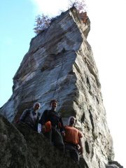 La via normale presenta molti problemi! La linea di salita è un continuo zig zag, la chiodatura molto scarsa e posizionata male; recuperare il compagno sul 2° e il 3° tiro è molto difficile per i numerosi attriti a cui la corda è sottoposta.