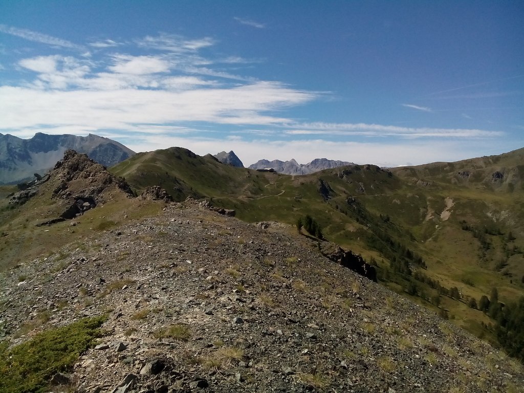 Si parte da Sagnalonga seguendo la rotabile in direzione Lago Nero, si raggiunge in discesa il Lago Comba Nera (chiamato comunemente Lago Profondo), poco dopo a dx si stracca traccia di sentiero (vedi cartello informativo con tettoria) che risale un costone con a dx ruscello, poco dopo tenere a sx tralasciando altra traccia sentiero che sale al lago Foiron. Dopo poco si giunge in prossimità di Capanna Mautino (Rifugio gestito) situato sopra il lago Nero. Passare davanti al rifugio seguendo mulattiera sino a giungere ad un pianoro ove seguire traccia erbosa a dx che dopo poco fa giungere ad una grossa tettoia in legno con indicazione Brigata Alpina Taurinense 4 Rgt. Alpini. Da lì seguire sulla sx sentiero che in ripida ascesa porta dapprima al Lago Saurel e poi a ricongiungersi con la mulattiera proveniente da Colle Bercia (Palina) seguire in leggera discesa sino a giungere al Lac Gignoux (7 Colori), effettuarne il periplo e risalire il costone poco prima disceso proseguendo sul sentiero di rientro verso il Colle Bercia. Appena imboccatolo dopo circa 50 mt seguire sulla sx ripida traccia su pietraia che porta al Colle Saurel da dove si scende sull’omonima seggiovia della Via Lattea. Seguire la strada di collegamento sino a giungere nuovamente sulla mulattiera del Colle Bercia. In prossimità di alcuni tornanti in discesa tenere la sx costeggiando areo sentiero che passa dapprima in mezzo alle reti paravalanghe e poi in cresta raggiunge un resto di fortino diroccato. Da lì scemdere sul pendio scosceso tenendo come meta la cresta che raggiunge le seggiovie di Colle Bercia, passando dalla Madonnina Nera. Si scende sino al piazzale Chaberton e se segue il sentiero della fede in direzione a salire oltrepassando Pilone votivo (Belvedere sul sottostante Lago Foiron), arrivare sino a palina con indicazione sentiero della Volpe e scendere in direzione del lago passando in pineta, ad un incrocio svoltare a sx in salita oltrepassando una sorgente da dove si raggiunge dopo poco tempo nuovamente Colle Bercia. Ripetere questo ultimo anello sino all’ultimo incrocio ove invece si scende a dx sino a cartello indicatore e poi nuovamemnte a sx sino a giungere a ponticello in legno da dove si raggiunge dopo poco su bella traccia la panoramica Rocca Remolon (bella vista panoramica su alta Valle Chisone). da lì scendere costeggiando il fortino diroccato e imboccare sentiero in ripida discesa tecnico che ci riporta a Sagnalonga chiudendo l’anello