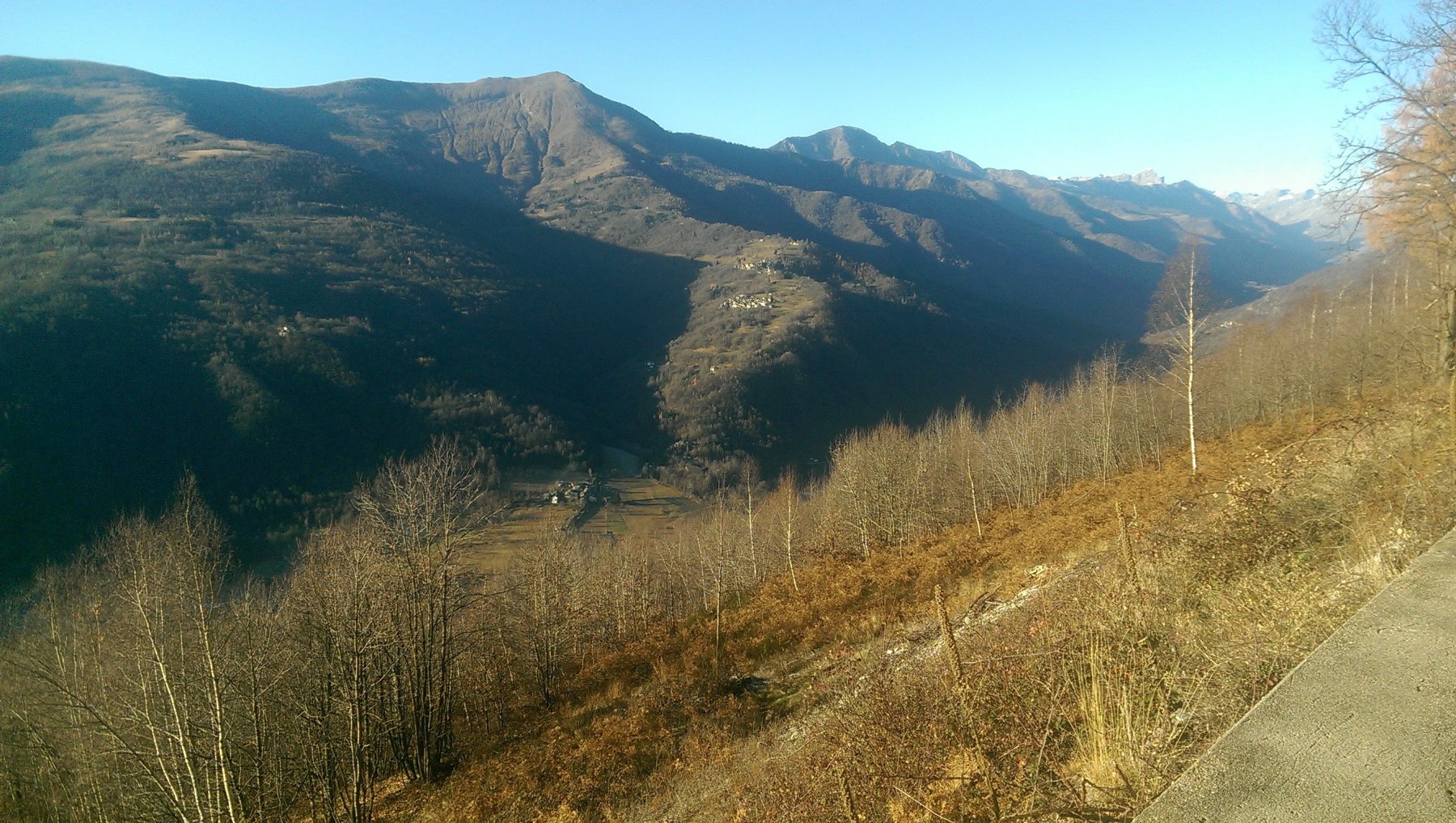 Ad un primo bivio si tiene la dx (a sx si raggiungono le borgate citate in precedenza) e si prende quota tralasciando due deviazioni che sulla dx scendono verso Brondello.