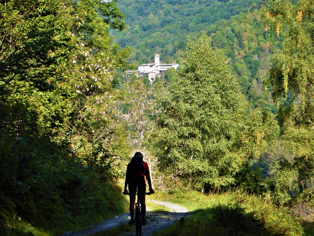 Si aggirano le pendici del monte Scolagarda attraversando un bellissimo bosco di betulle ed in ultimo con una breve discesa si raggiunge la sterrata che da S.Sisto sale a San Bernardo di Gilba, punto molto panoramico che si può raggiungere in pochi minuti.