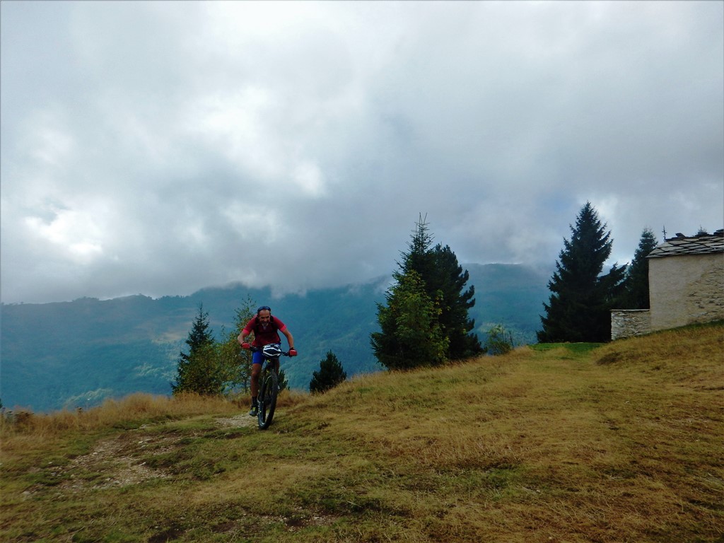 Il percorso diventa sterrato con alcuni strappi più impegnativi, si segue lungamente la cresta che divide valle Varaita e val Po passando per il Colletto Alto,il piano di Pramalano e l’ameno sito si San Bernardo la cui Cappella si può raggiungere con una breve deviazione in circa 5 minuti.