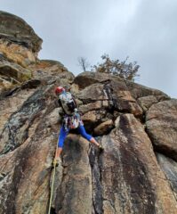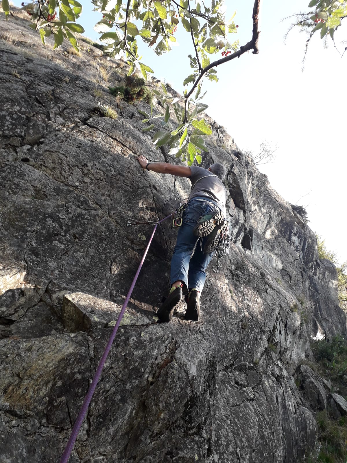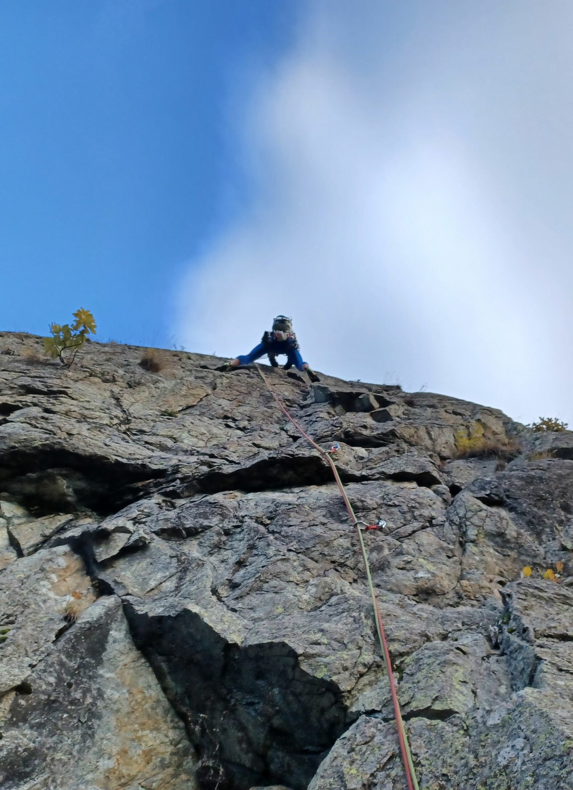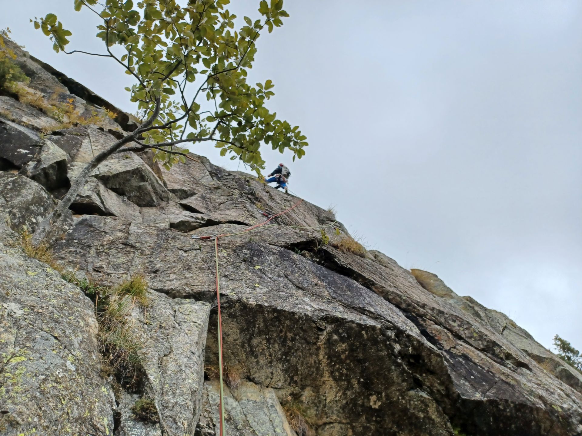 - L4 salire lo spigolo con alberello alla base, segue muro ben appigliato. 20 m.