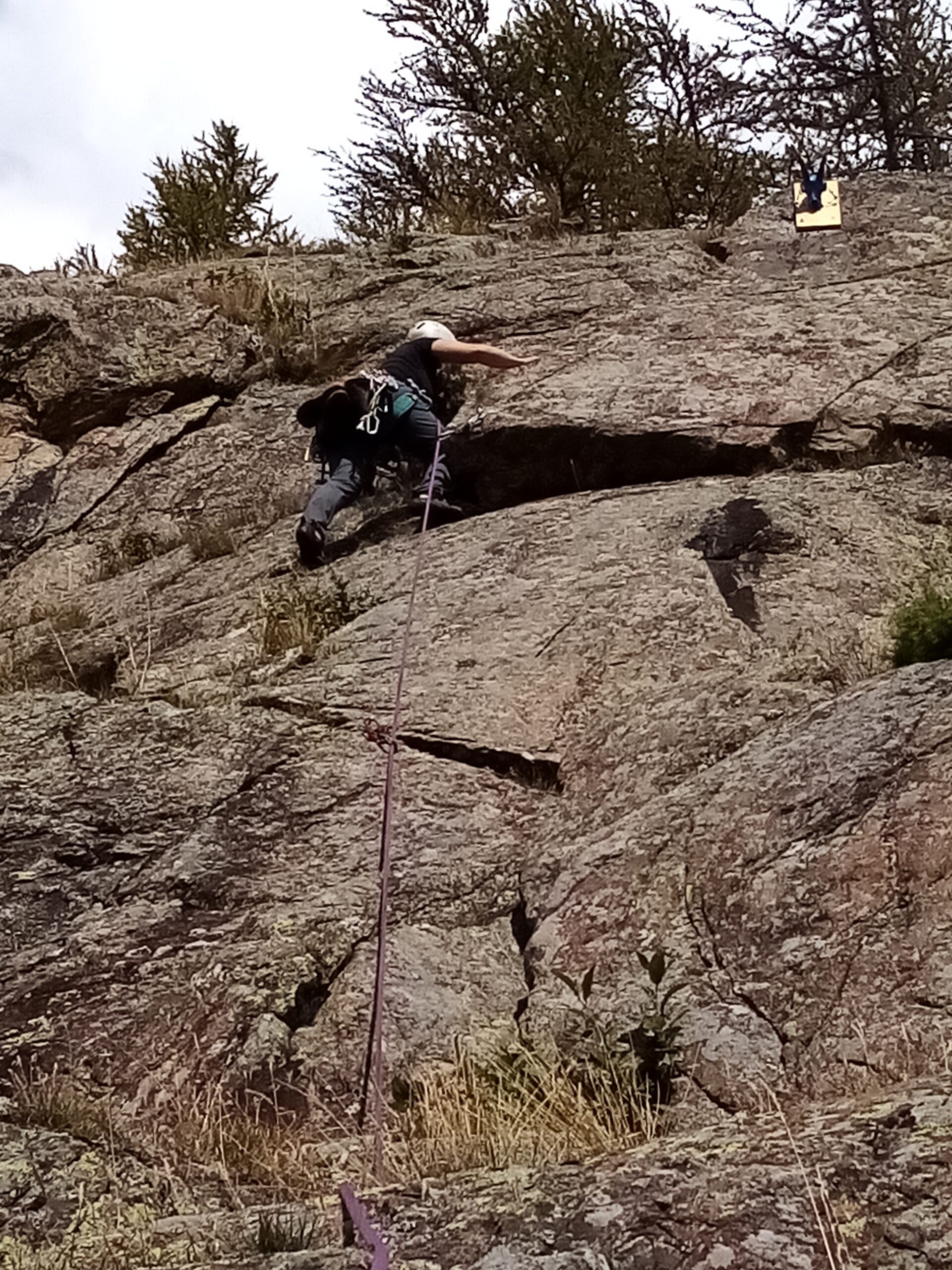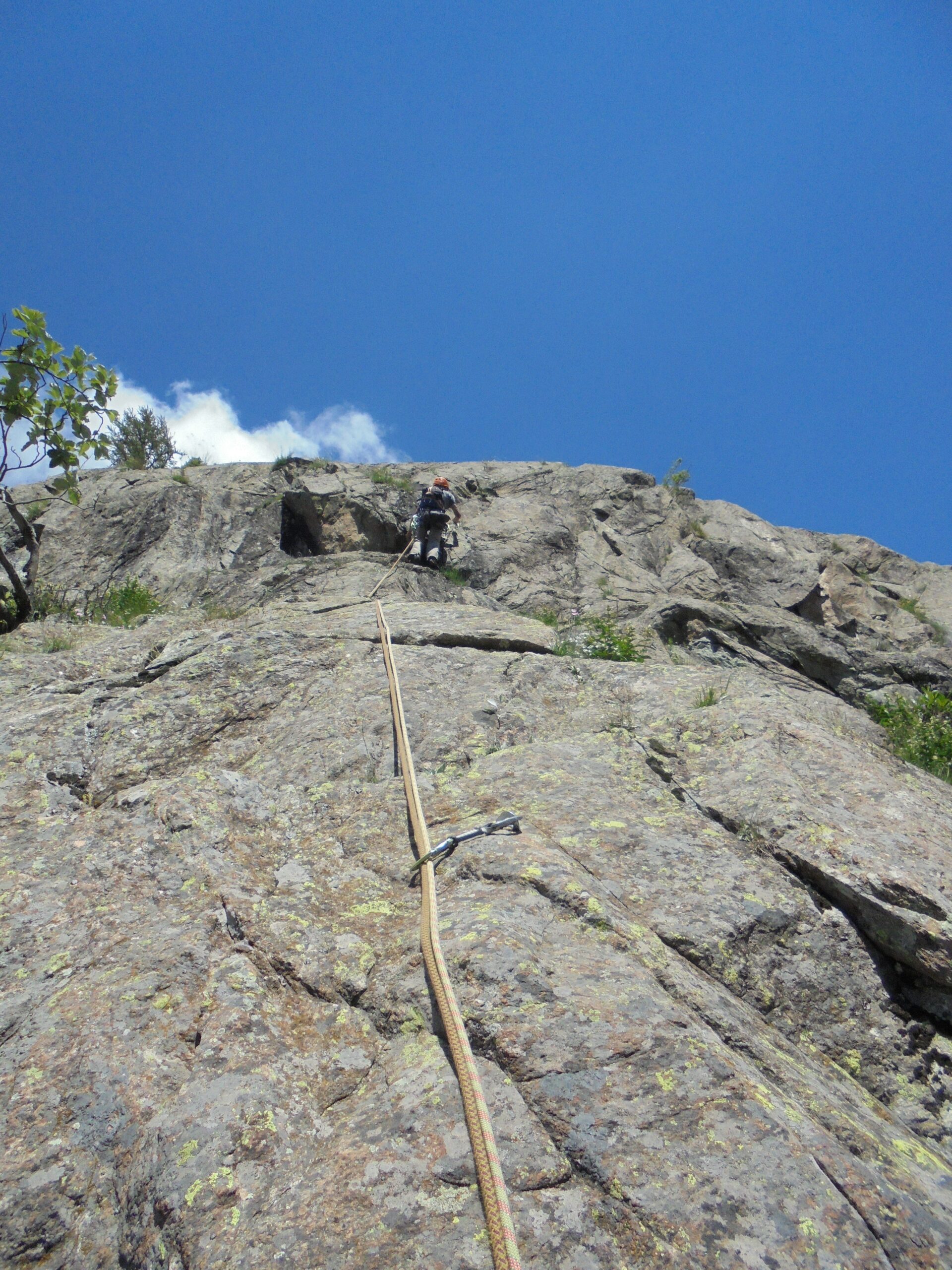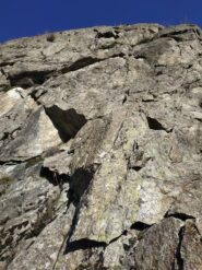 - L8 fessura, sperone e uscita a sinistra su placca. 25 m.