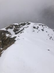 Raggiunta l’anticima restano ultimi 50 m di facile cresta rocciosa che portano alla croce di vetta.
