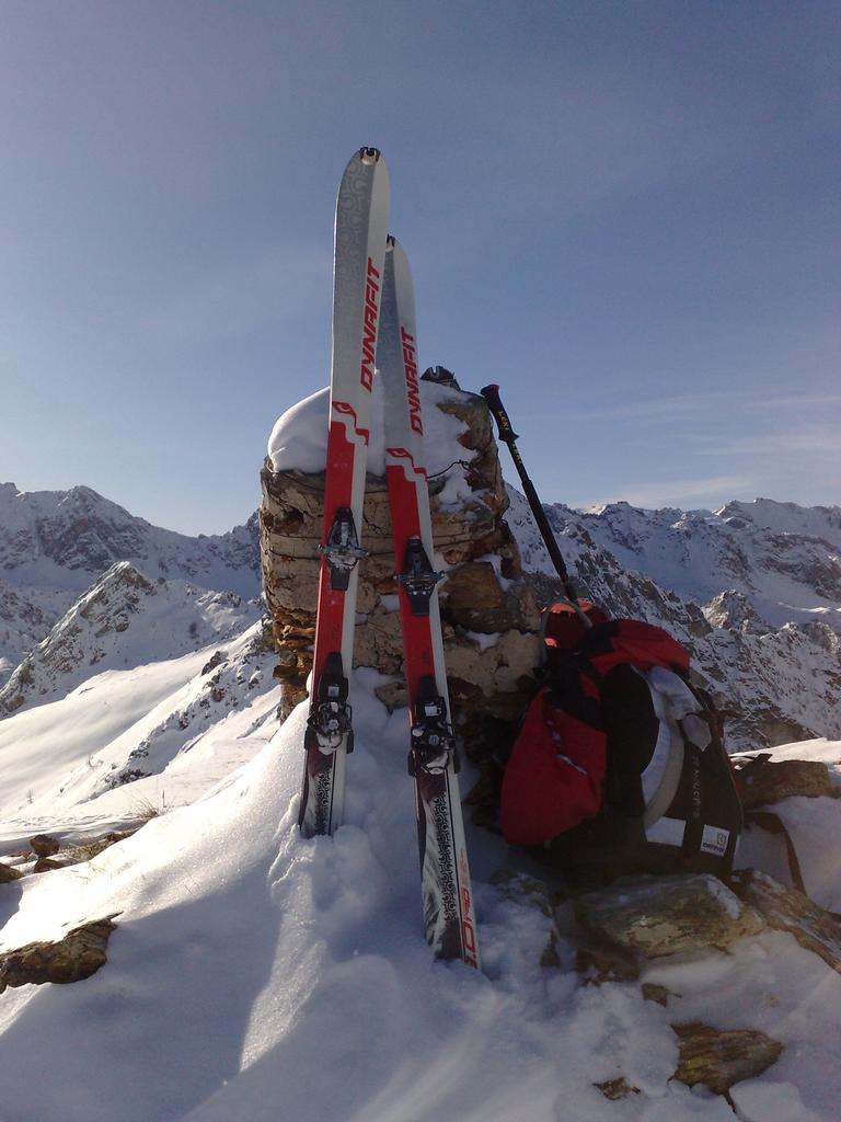 seguito tracce di ieri,ci hanno portato a sx del vallone che porta al giobert su uno sperone,da li seguito la cresta fino alla punta.da non fare con poca neve.In discesa direi niente male,a parte qualche tratto di neve rocciosa,farina da urlo da cima a fondo.