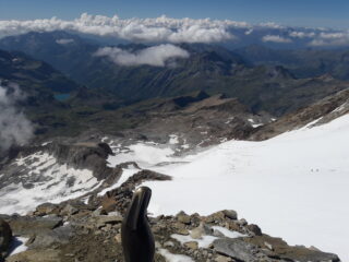 Bellissimo panorama e cielo sereno fino alla discesa e soprattutto tanto, troppo, caldo. In cima anche la Nadim e Chaos
