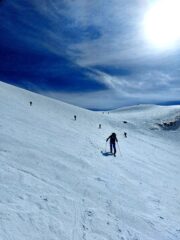 Moltissimi alpinisti e skialp su questa cima, facile e breve ma ‘intensa’ per le pendenze sempre sostenute.