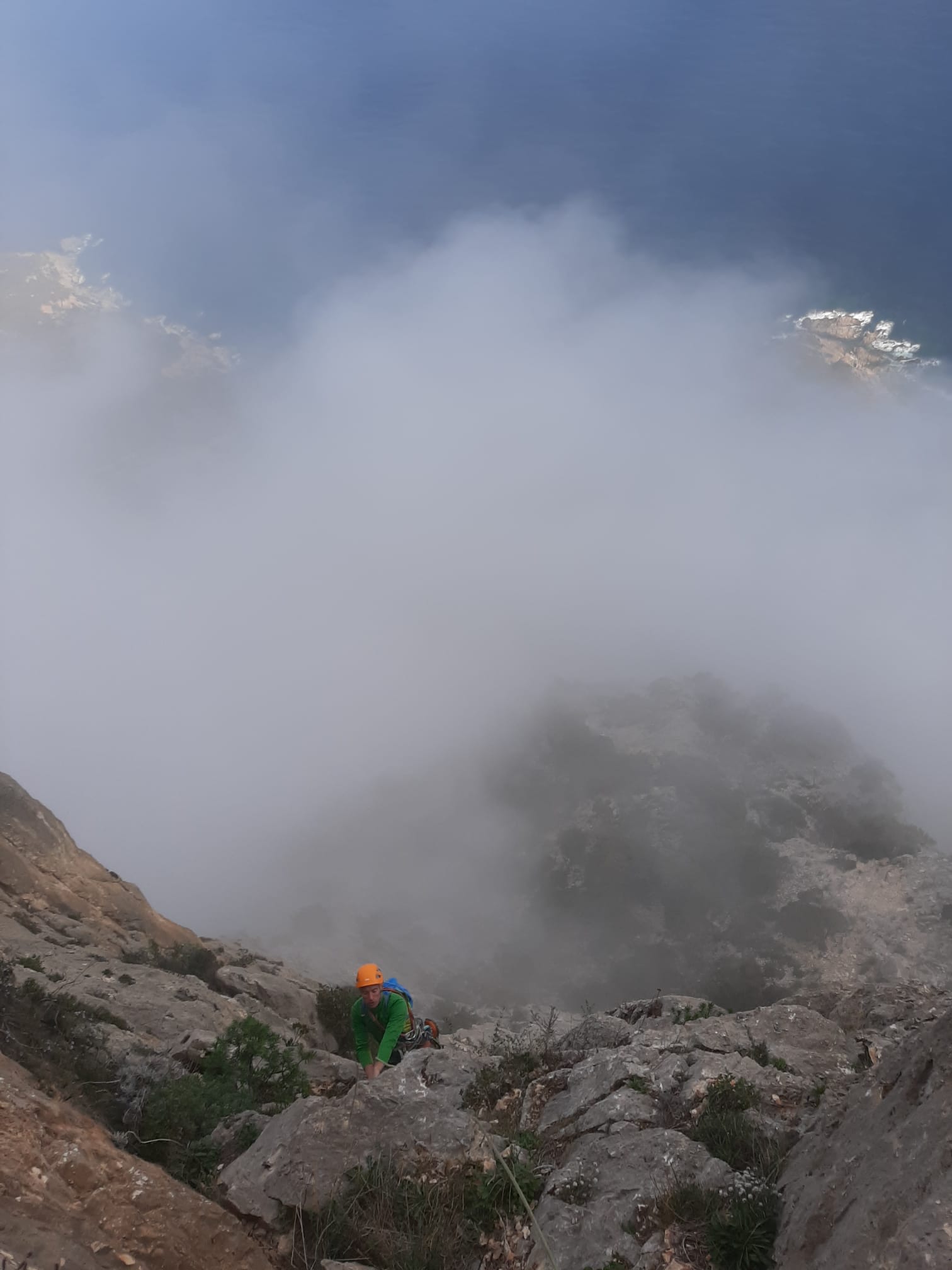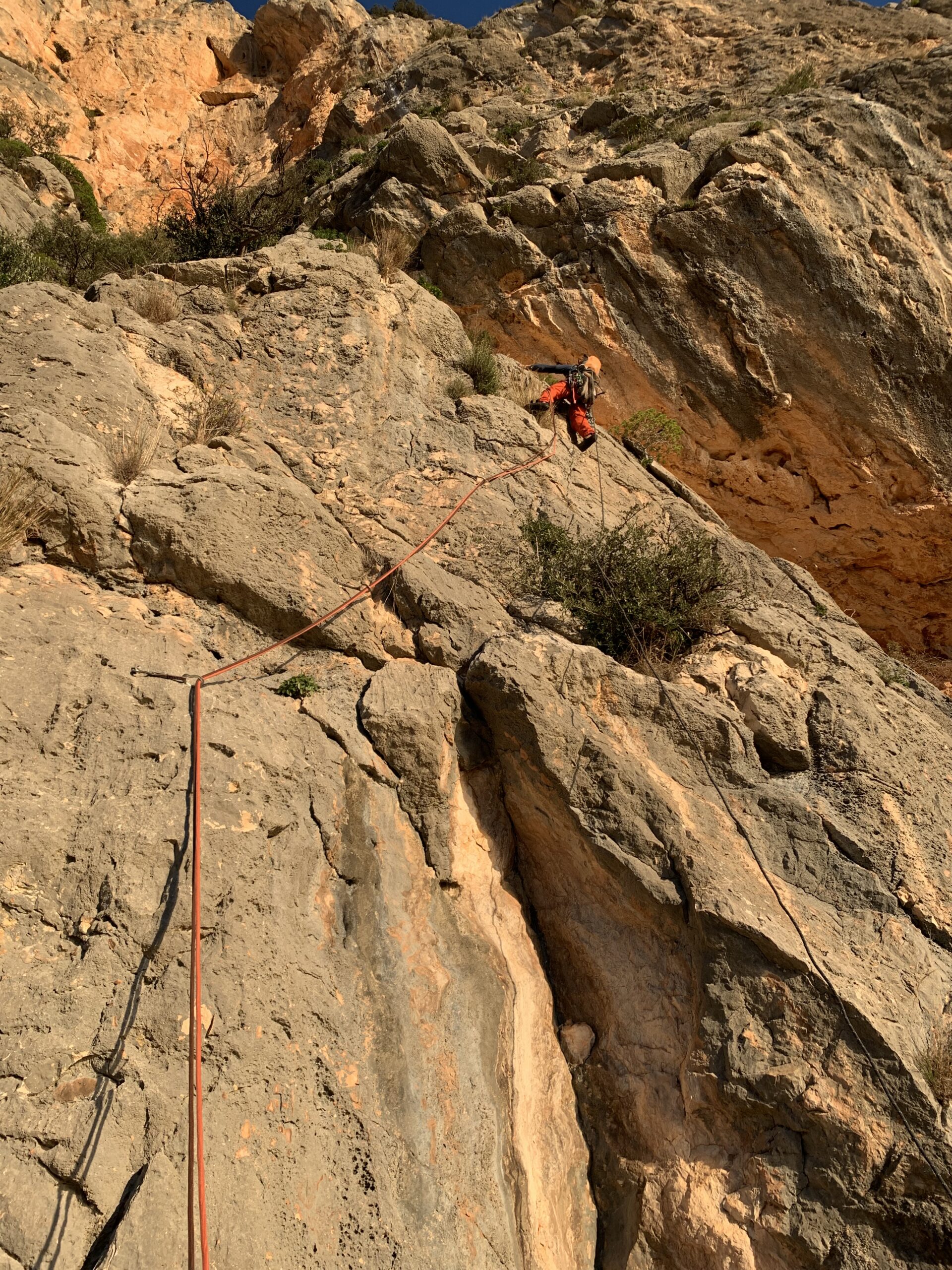 Tiro divertente e spettacolare con dei punti di vista sulla costa e Pedralonga unici! - 12 TIRO 6a – 37mt (La Tormenta) : Questo tiro prende questo nome perché attrezzato in condizioni al limite del possibile con un vento fortissimo.