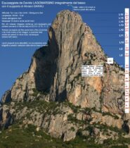 - 16 TIRO 4 – 30mt : Per facili balze si raggiunge l’ultimo spit della via posto su un masso di roccia grigia compatta in comoda posizione. Libro della via alla base, cui raccomandiamo di chiudere sempre con cura per evitare che l’acqua e il vento lo possano distruggere.