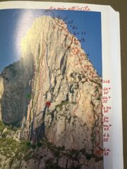 Chiodatura ravvicinata mai pericolosa tranne ultimi tiri molto facili dove e’ un po’ più distanziata.