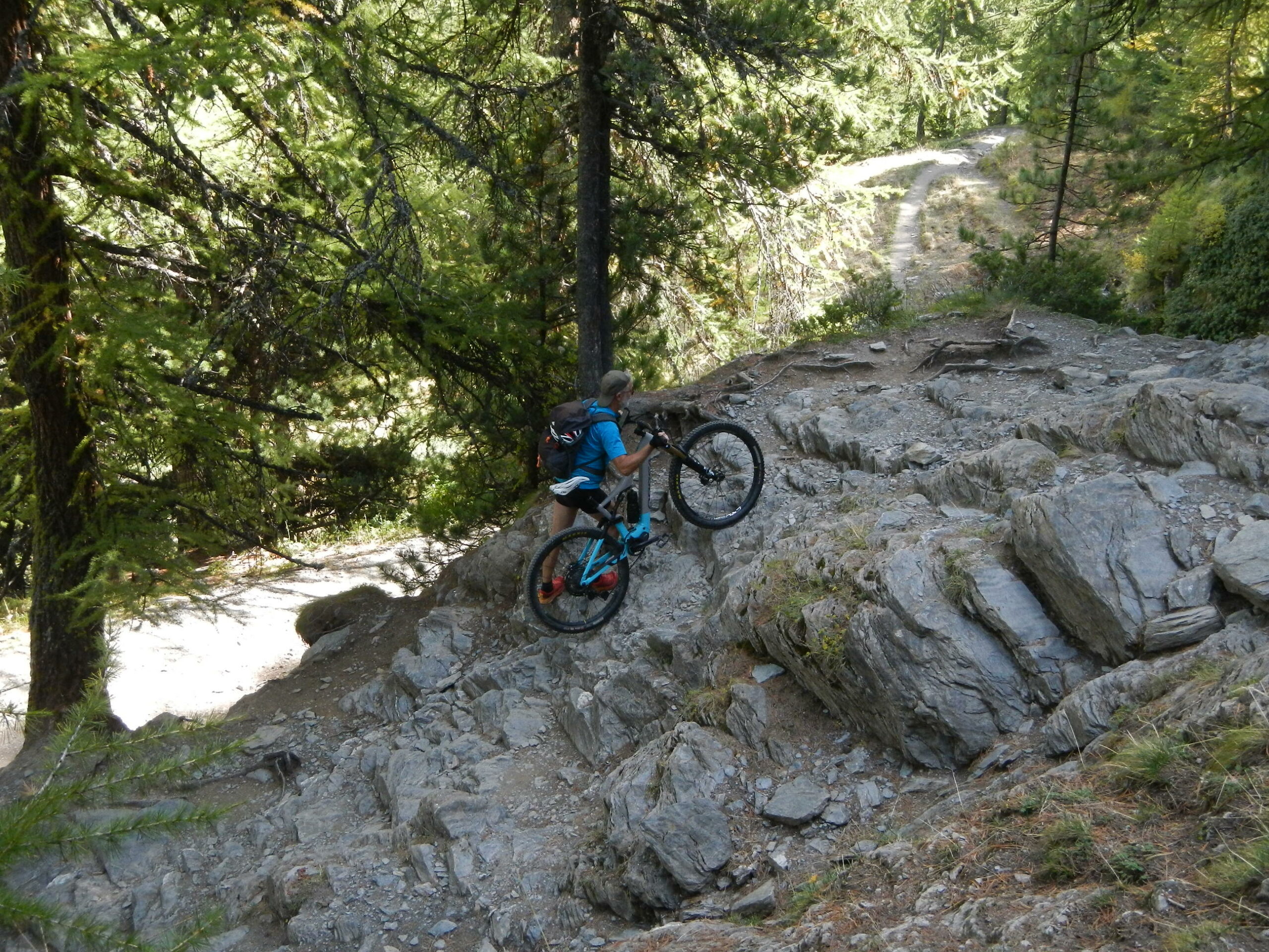 Dal colle alla vetta seguendo la cresta, anche qui con bei tratti pedalabili nella parte alta; panorama sempre stupendo… Discesa sino al lago Saint Anne seguendo la via di salita (tratti S2), poi dirigersi verso il lago Miroir. Dal lago Miror si scende nuovamente al parcheggio: tratto iniziale molto flow (S1), poi un breve tratto di S3 con passaggio su passerella al termine della quale un salto con una certa esposizione richiede attenzione.