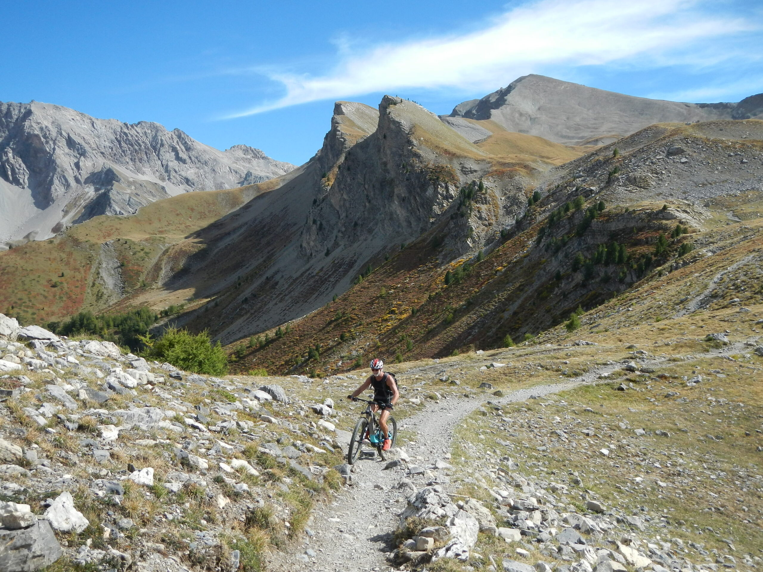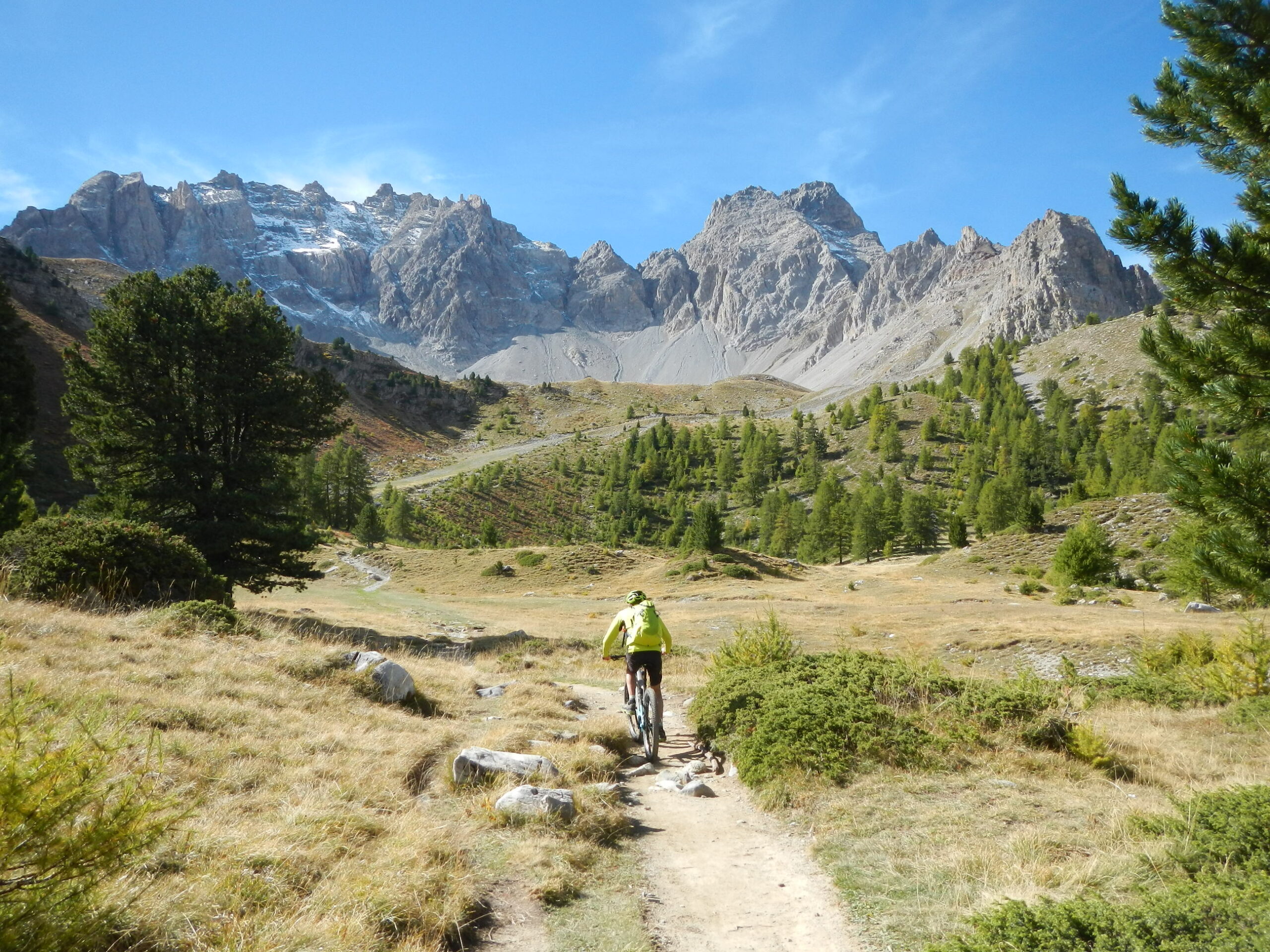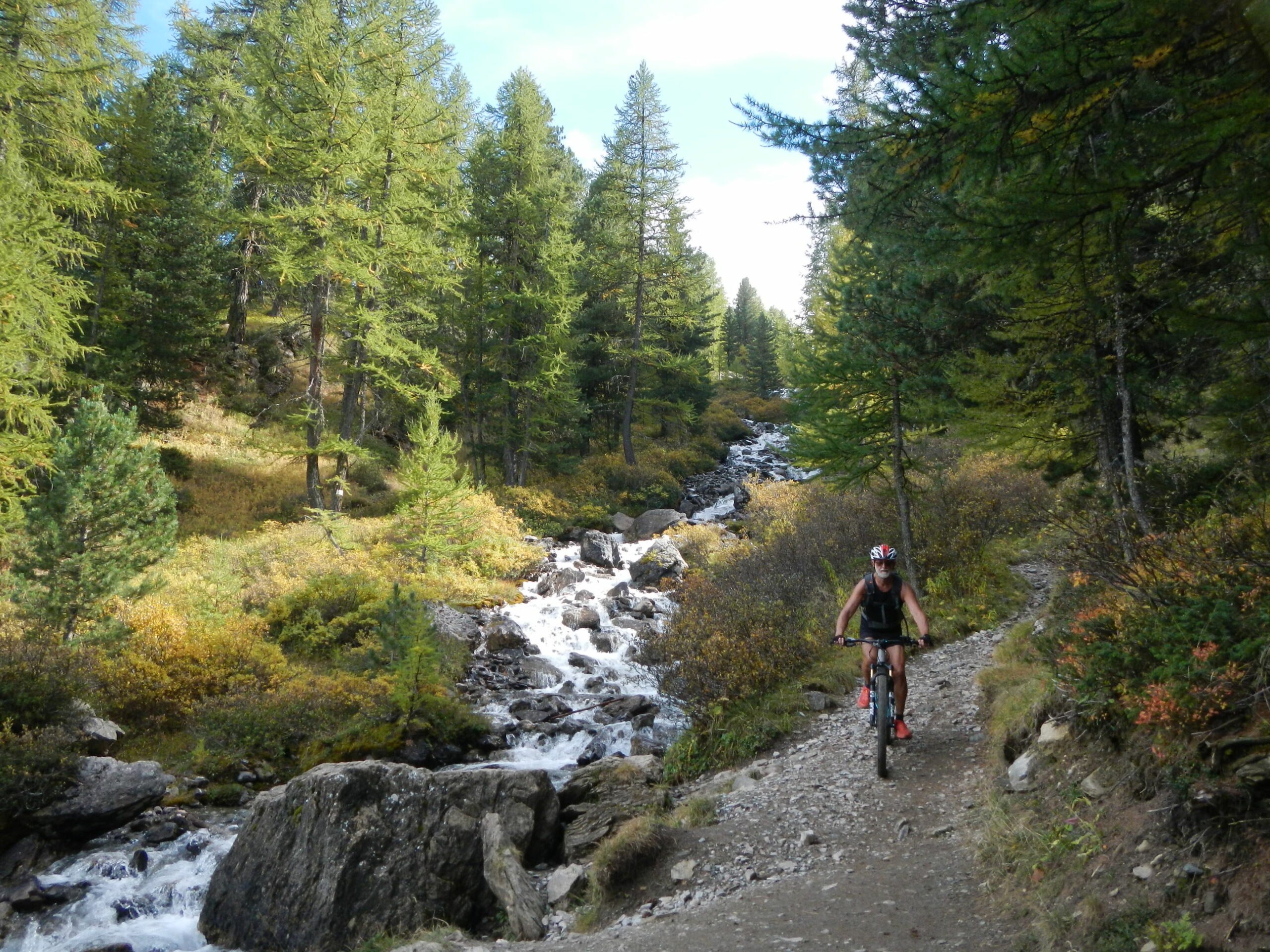 Dal parcheggio continuare sul fondo valle sini ad arrivare al parcheggio di Fond de Chaurionde. Di qui ancora qualche corto tratto in sella e poi occorre spinger/portare per circa 150 metri seguendo il corso del torrente Melezes.