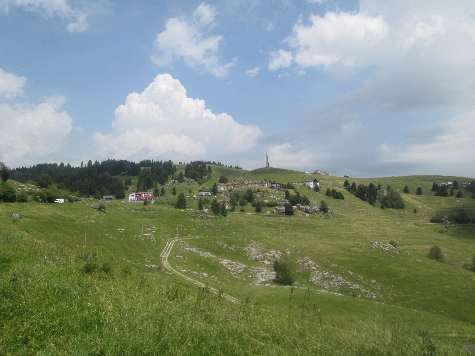 Si prosegue per circa 8 Km con percorso semipianeggiante, interrotto solo da una breve salita, fino ad incrociare la strada asfaltata che sale da Calvene. Si tiene la sinistra fino ad arrivare al Rifugio Monte Corno dove, tenendo sempre la sinistra e passando per il Rifugio Granezza, si segue la strada principale che scende in direzione di Asiago.