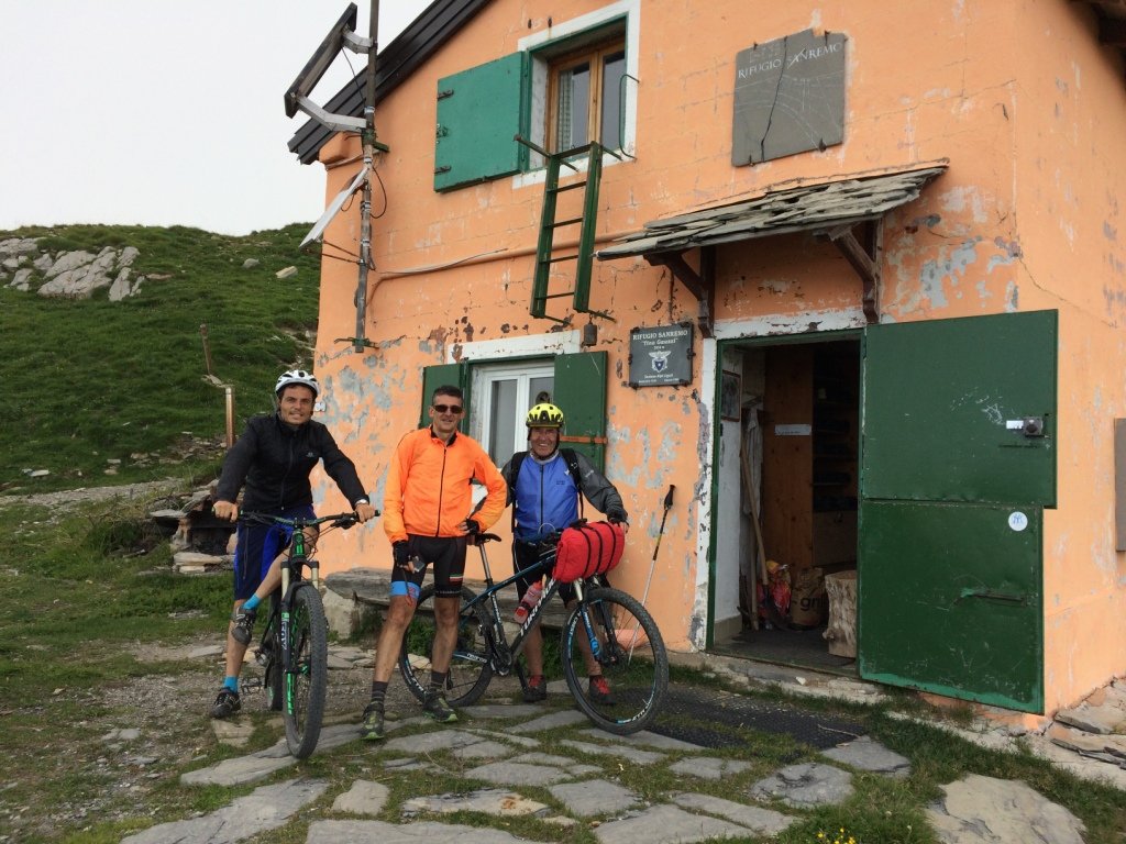 Arrivati in treno a Limone partiti dopo aver ritirato le chiavi del rif. Sanremo da Bottero Sport (vedere sul sito del rifugio le informazioni e modalità ritiro e consegna) , breve pausa caffè alla Marmotte dove finisce l’asfalto ( locale quasi al Colle Tenda gestito dal mitico Nino Viale che fece la prima discesa in sci dalla nord del Viso), di nuovo in sella lungo la Via del Sale.
