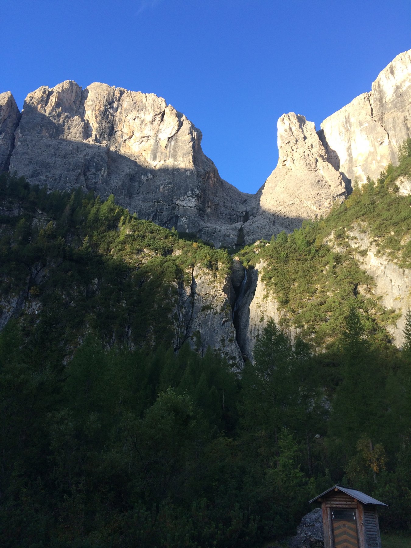 Seguire ciclabile fino alla Cascata Pisciadù dopodiché conviene fare la ss243 fino al Passo Gardena, dopo pochi metri parte un bel sentiero, tecnico nella parte finale, che porta a Selva.