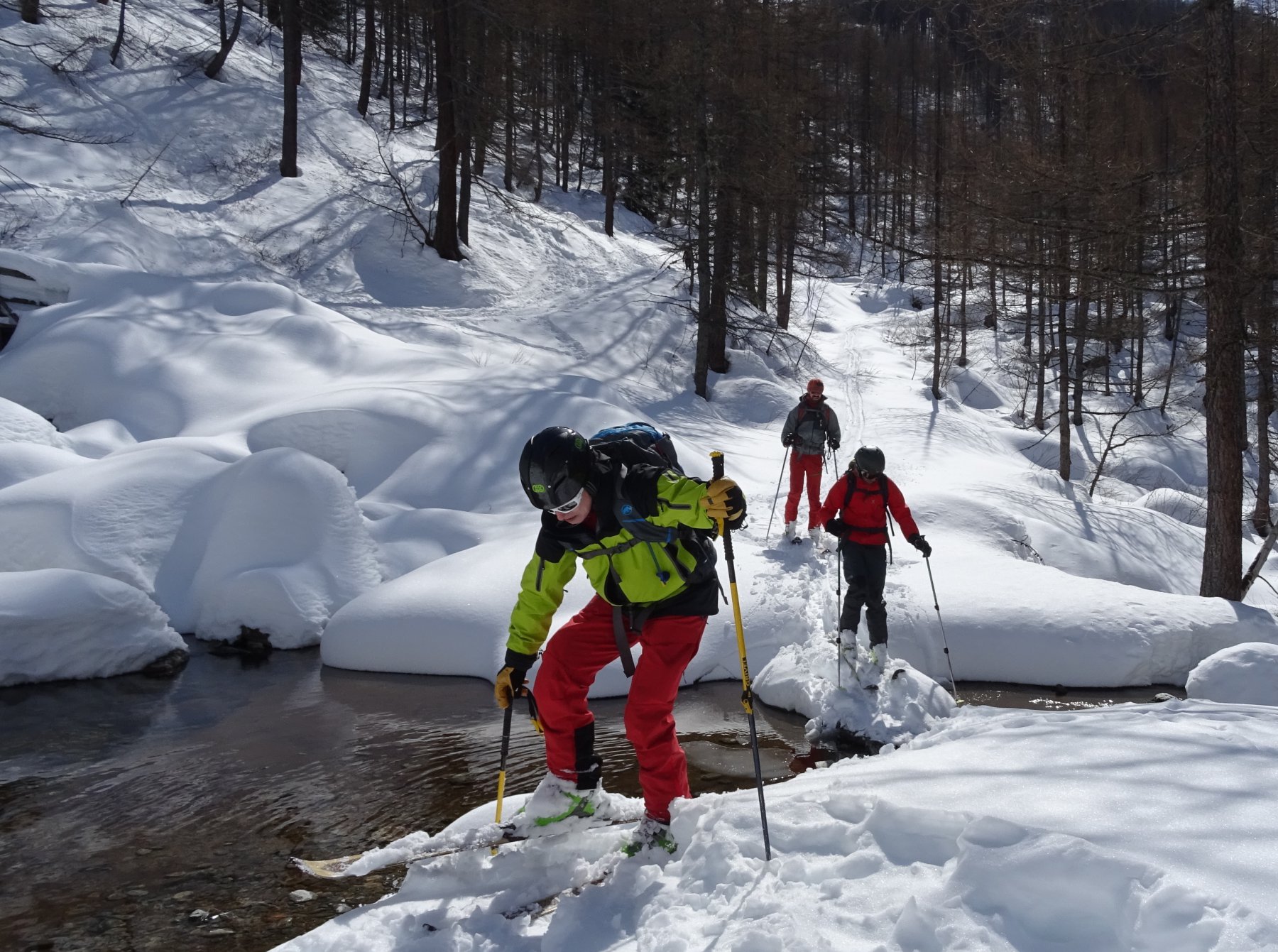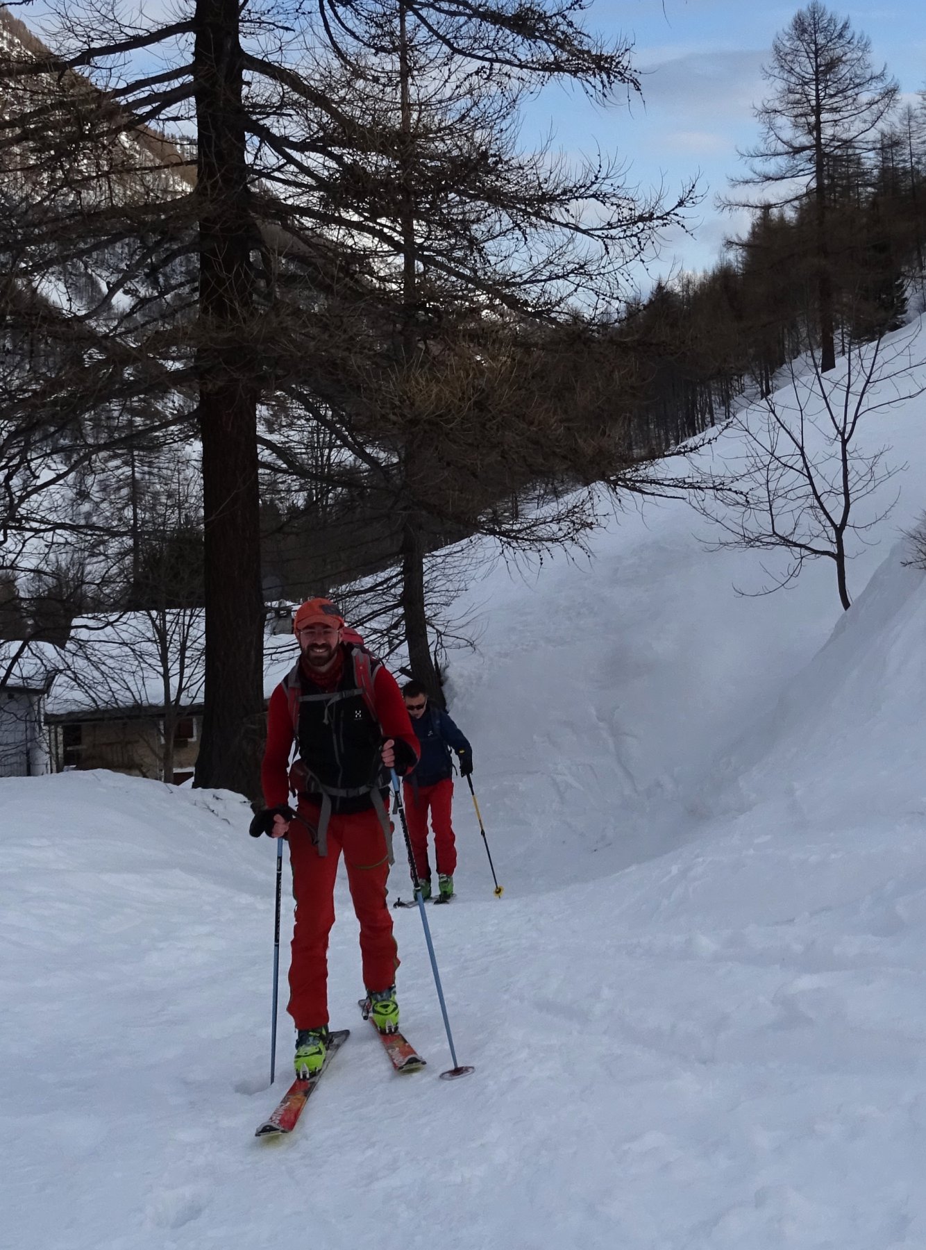 Sotto i 1700 meglio seguire la strada, oggi bella coperta di neve e rapida, perché fuori si fanno ormai i conti con la crosta…