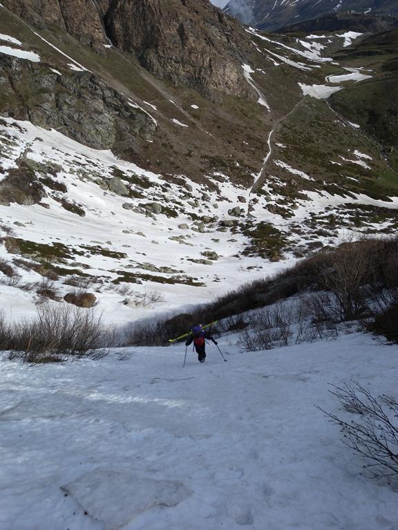 Diverse volte al Malamot, e quel versante mi ha sempre fatto sgiai..ieri non stavo benissimo ed oggi viste le condizioni completamente diverse dalla precedente recensione ho preferoto lasciare gli sci sotto.Complimenti a mark che ha sceso il canale in condizioni disastrose, tutto una valanga con blocchi gelati e soprattutto i brutti tagli del giorno prima duri come la pietra..Oggi i 15 gradi di differenza, per lo meno non muoveva più nulla..Gita cmq. bellissima nell’insieme, con scenari verso la cima da sogno.Peccato la nebbia nella parte finale, ma le poche lingue di neve rimaste ci hanno presto condotto a 150 metri dall’auto.Un saluto al simpatico gruppetto di ciapolatori con cui ho condiviso la prima parte della discesa, nessun altro in sci nella zona.