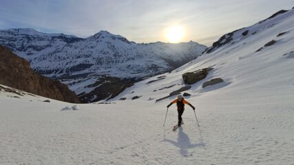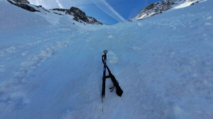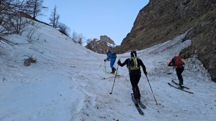 5 minuti di portage e poi un piccolo gava e buta , saliti dritti per dritti nella Gorgia su ottima neve . La strettoia del pendio finale era svalangata quindi bella dura da ramponi, Ma appena si passa abbiamo rimesso gli sci e si tengono fino in punta su Neva farinosa… la discesa è stata incredibile!! Farina paura fino al conoide, poi li bisogna destreggiarsi bene per pochissimo e dopo firn bellissimo che piano piano diventa bagnata ma scendendo tutto a dx le pendenze sono sostenute e quindi è sempre divertente . Poi 5 minuti di portage e si aprono le danze all auto con birra a volontà e mangiare per tutti… bella li!! Con fede75, enzo il buono, Danilo. Fabio e Manuel il forte….