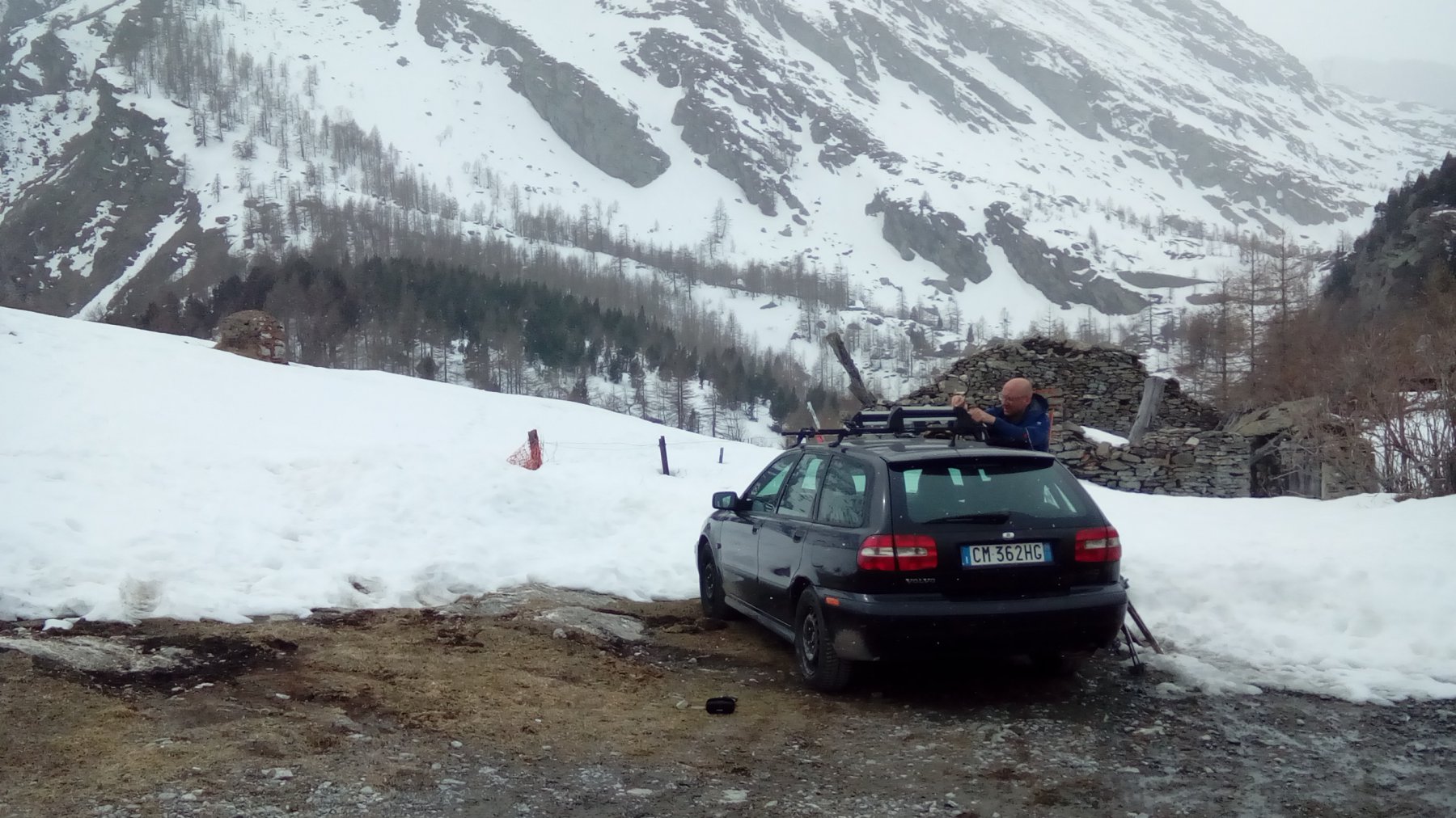 La gita è fantastica, c’è tutto, isolamento, ricerca dell’itinerario, dislivello e pendii (veramente) sostenuti. L’unico problema è che ci sarebbe voluto un metro di neve trasformata in più… Abbiamo perso il conto di tutti i gava e buta fatti, e, per seguire i canali innevati, siamo arrivati nei pressi della Cime de Bard. A quel punto dalla Francia è arrivava il brutto e una leggera nevicata per cui dietrofront e non siamo arrivati in vetta. In salita, traverso a 2200 affrontato con i ramponi su neve ghiacciata e più sopra altro traverso affrontato con i coltelli. Sci a spalle per lunghi tratti, anche se ci siamo tolti lo sfizio di scendere il pendio ripido che scende direttamente sul traverso posto tutto sulla sinistra idrografica e un altro che corre parallelo al pendio del sentiero nella parte bassa.