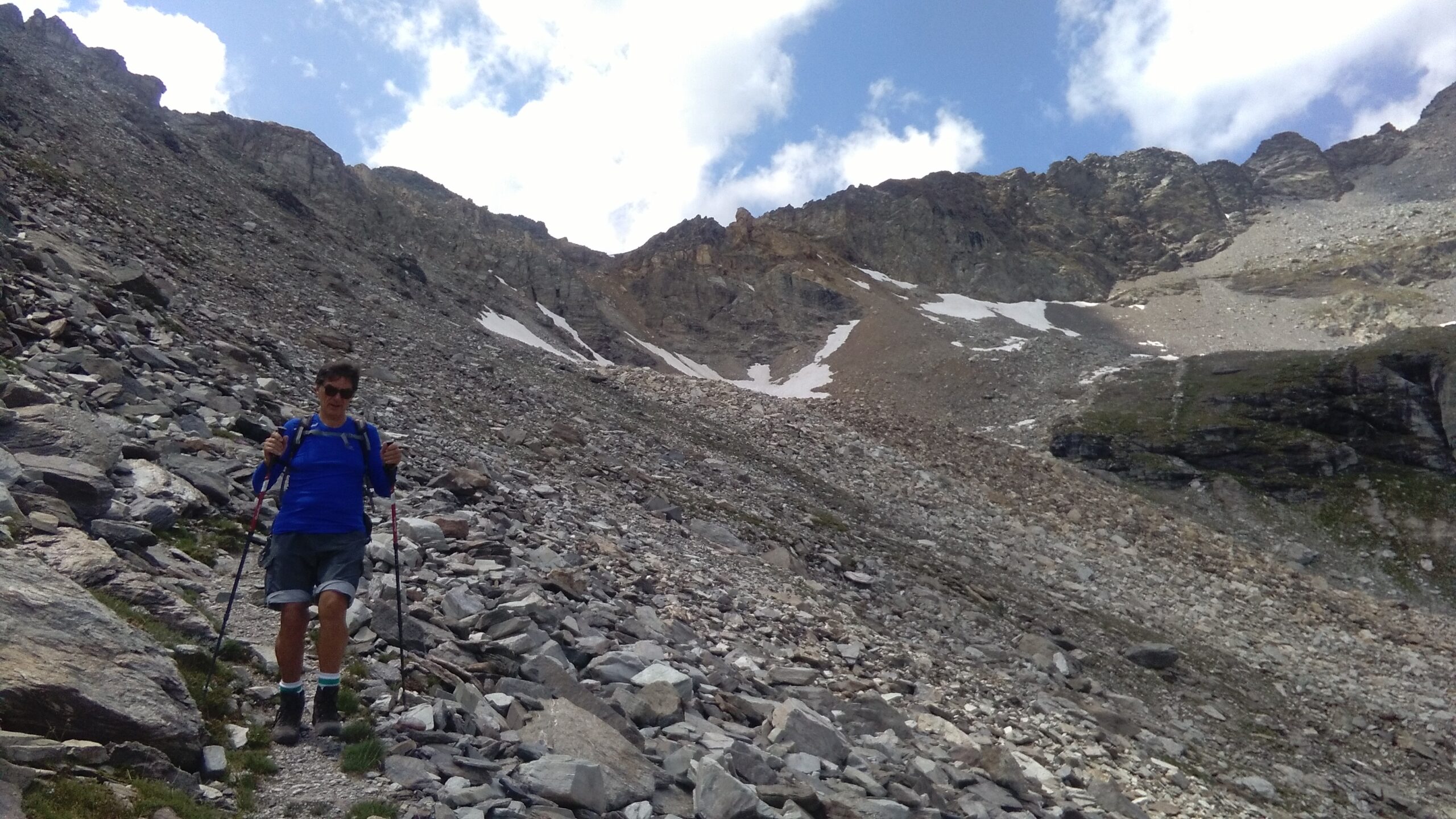Appena oltre, la frana del 2019, ha invaso il sentiero con grossi massi per un fronte di almeno 150 m rendendolo ostico. Ma così lo sarà per il 70% della restante salita tra roccette mobili e sfasciumi ripidi.