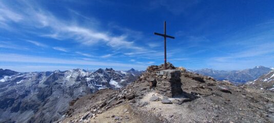 Lasciata l’auto poco sopra la Bergeria Borrello. Da qui abbiamo seguito la bella mulattiera per il rifugio Avanzà. Breve pausa caffè e siamo ripartiti per la vetta. Traccia sempre piuttosto evidente grazie ai bolli rossi presenti, unici punti dove prestare attenzione la pietraia appena sopra al Lago della Vecchia r il tratto terminale, dove il detrito è un pó più mobile. In vetta in poco meno di 3 ore. Dalla cima panorama a giro d’orizzonte, con bel colpo d’occhio sul gruppo Niblé-Ambin, spolverato di neve fresca, e sui ghiacciai della Vanoise. In lontananza, fanno capolino il Bianco e le Grande Jorasses.