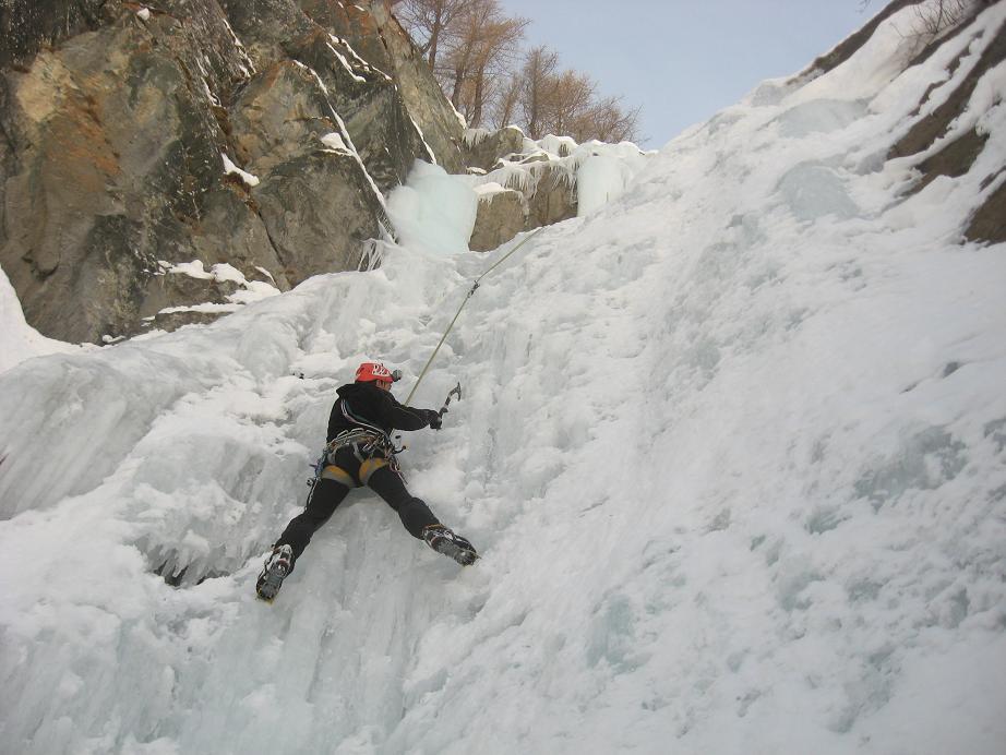 Luogo isolato e poco battuto dai ghiacciatori. Merita sicuramente una visita. Prima di arrivare alla cascata relazionata si incontra un muro verticale con uscita su roccia instabile ed erba II/4+/M5.