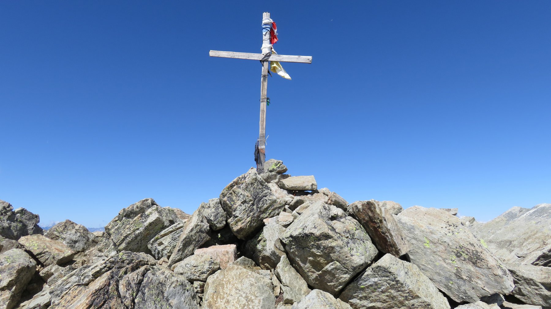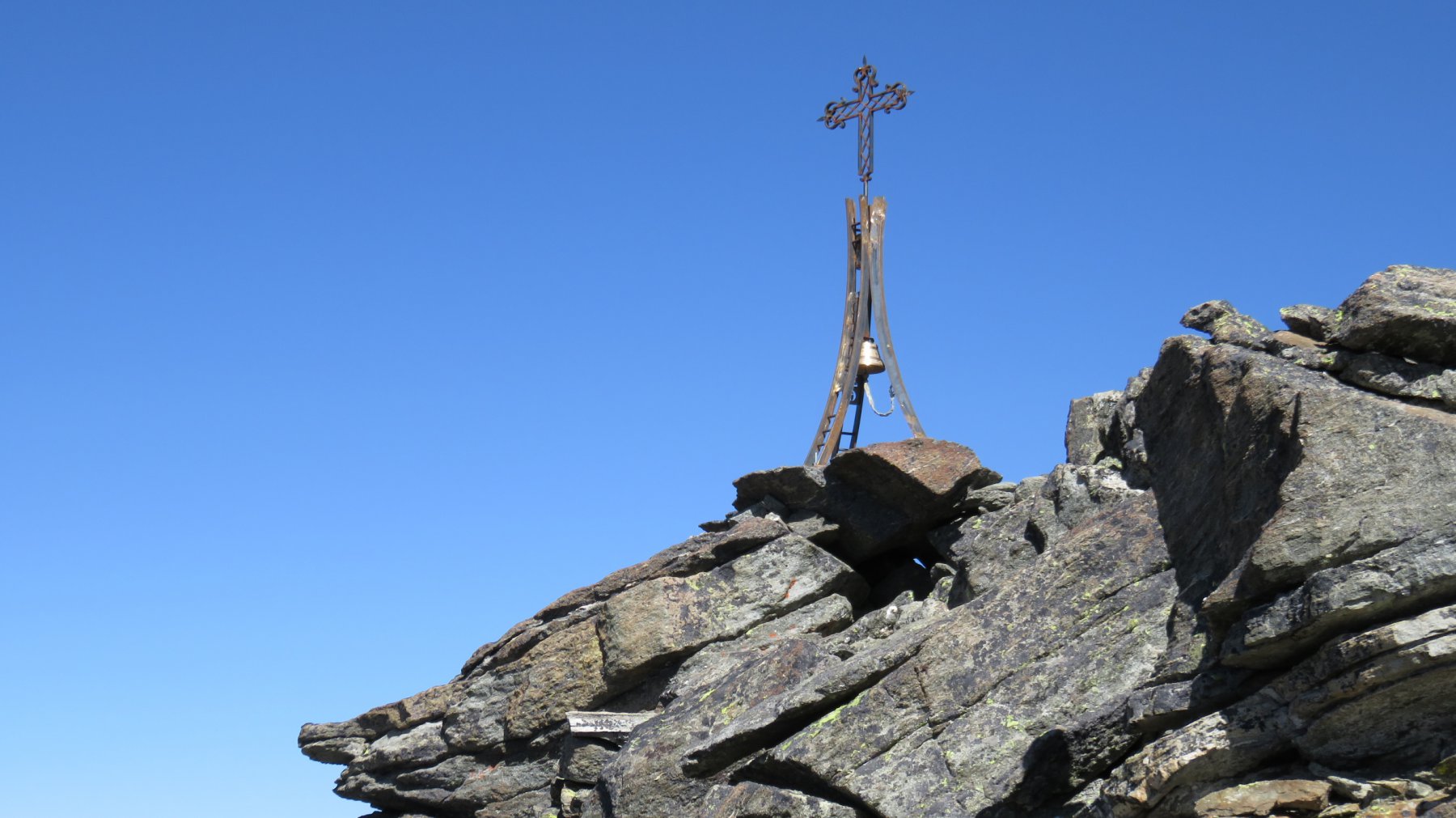 Sul Mont Rafrey è stata collocata una nuova croce in ferro issata su un elegante struttura in ferro con campana di vetta; inoltre sotto la struttura è stata posta una cassetta metallica con libro di vetta. Ho avuto la fortuna di essere il primo visitatore a firmare il libro di vetta subito dopo gli installatori ( se ricordo bene la data di installazione è il 29 di Agosto). Non sto a descrivere il giro ad anello percorso, magari lo farà qualcun altro in futuro, io mi sento ampiamente ripagato dalla grande e bellissima gita, non eccessivamente lunga e non molto faticosa; la bella giornata mi ha ampiamente ripagato della levataccia mattutina con grandissimi e bellissimi panorami; il giro si snoda come da progressione sotto descritta.