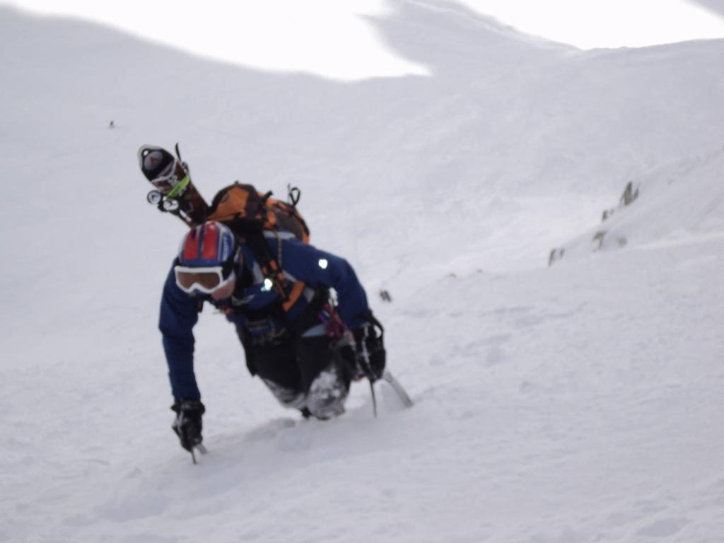 canale veramente bello, in ambiente alpinistico decisamente severo.Pendenze sostenute, abbiamo calzato gli sci dal colle