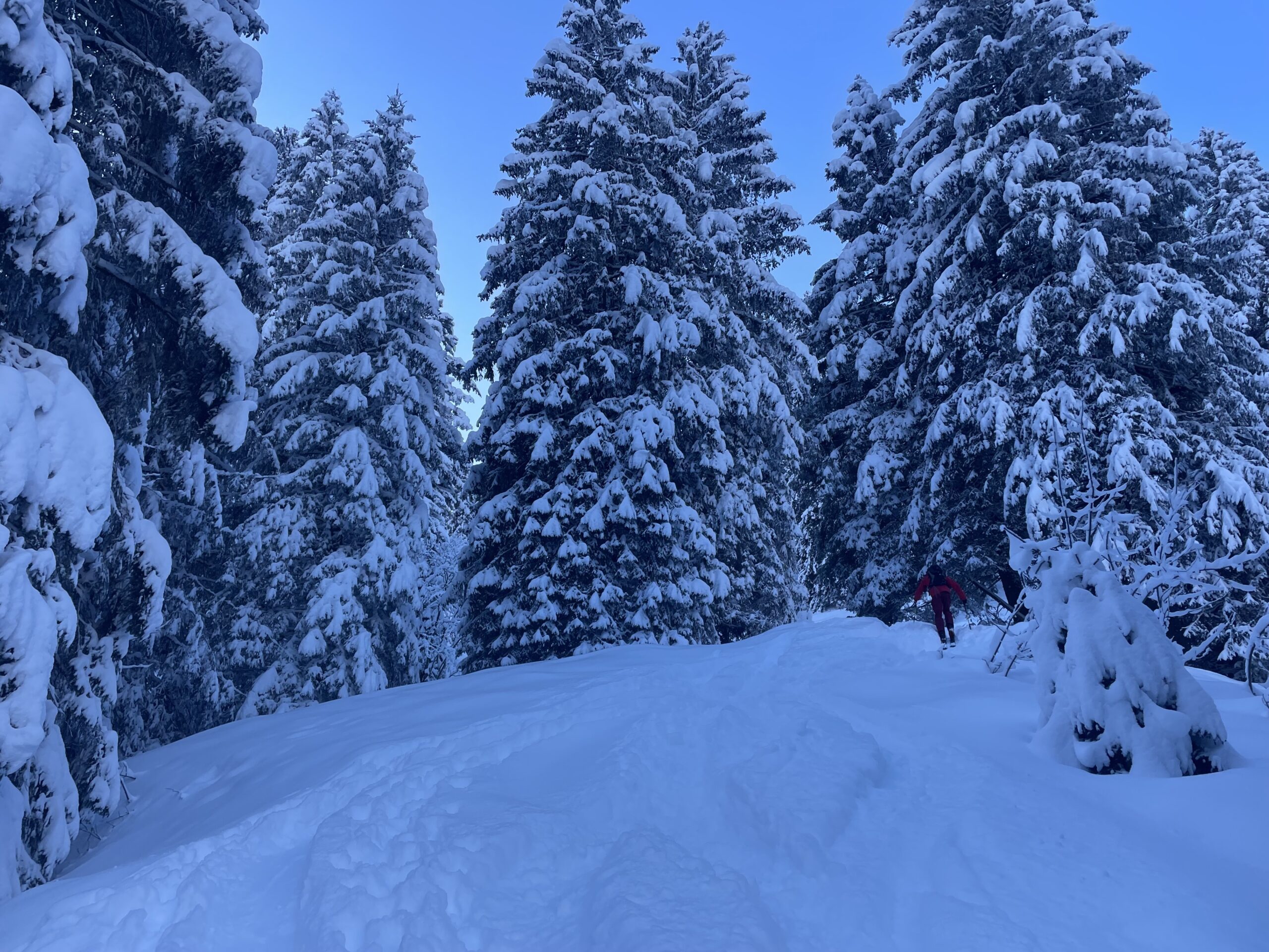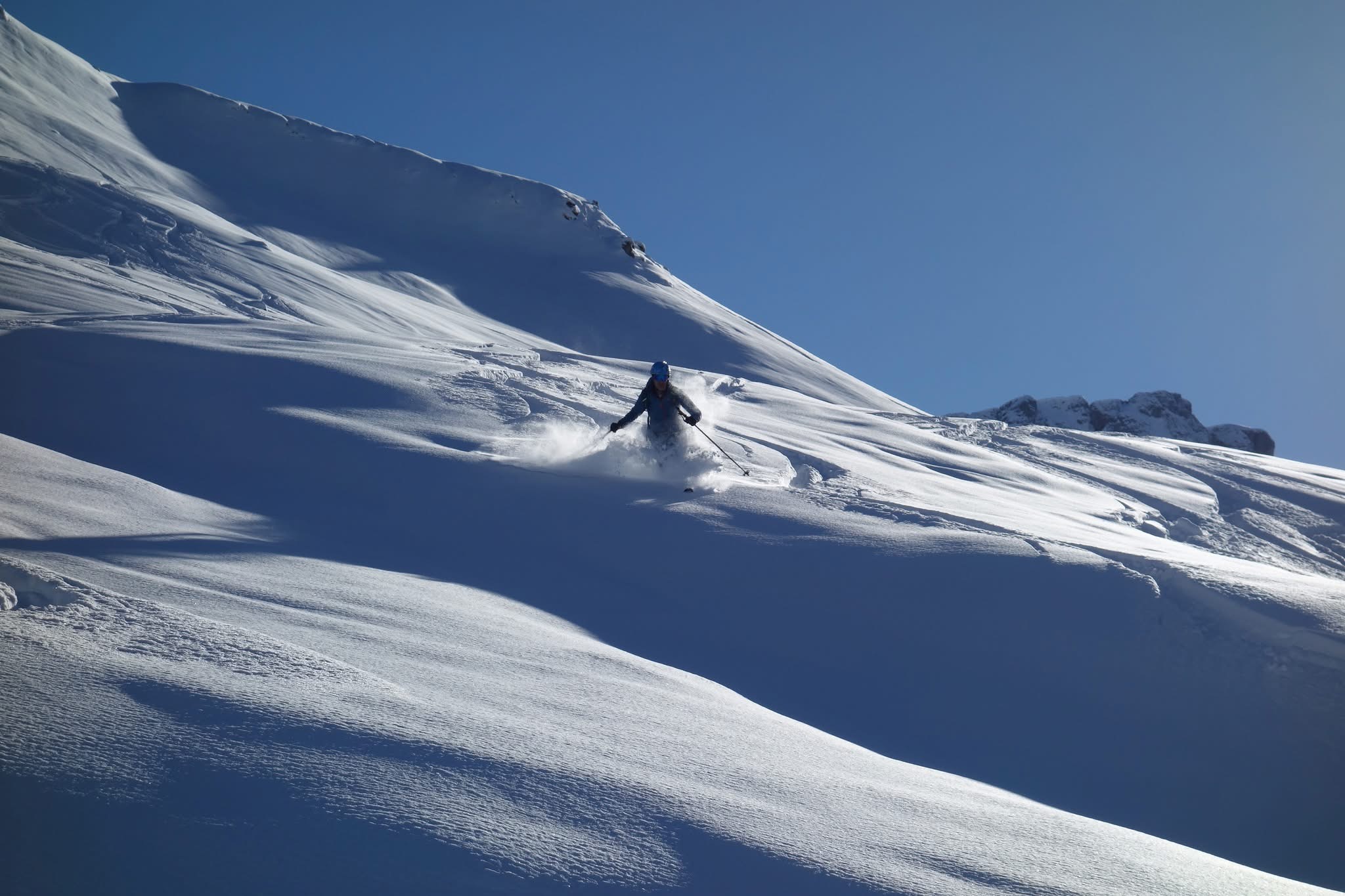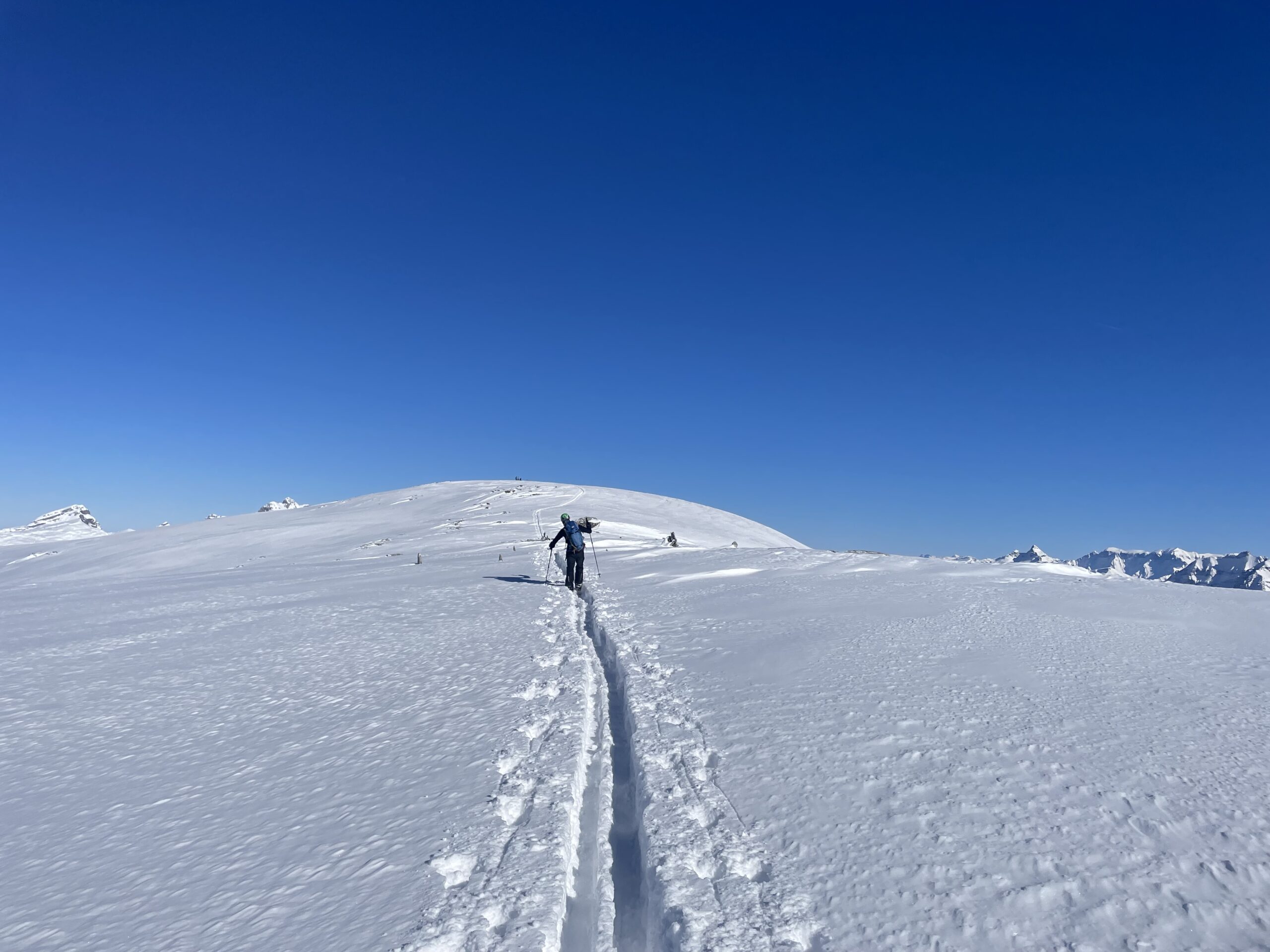 Uno splendido canalone non particolarmente ripido ma con un poco di attenzione e da affrontare solo con condizioni ottimali.