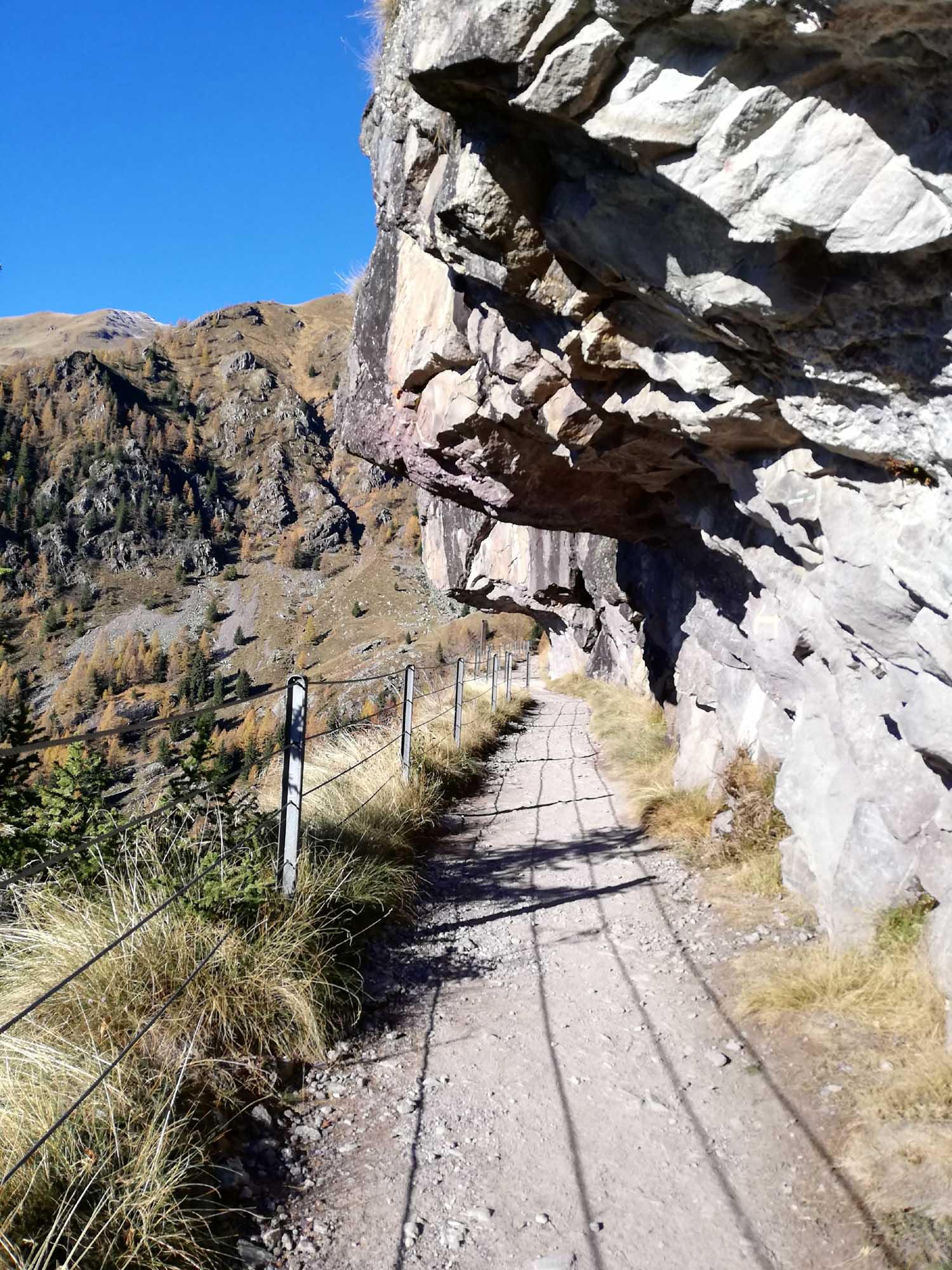 La discesa ad anello si effettua scendendo sulla sponda opposta del Rio Povo rispetto alla salita, partendo appena sotto la diga residua percorrendo il sentiero più ripido ed impegnativo, raggiungendo Corne Strette e Vilminore al punto di partenza.