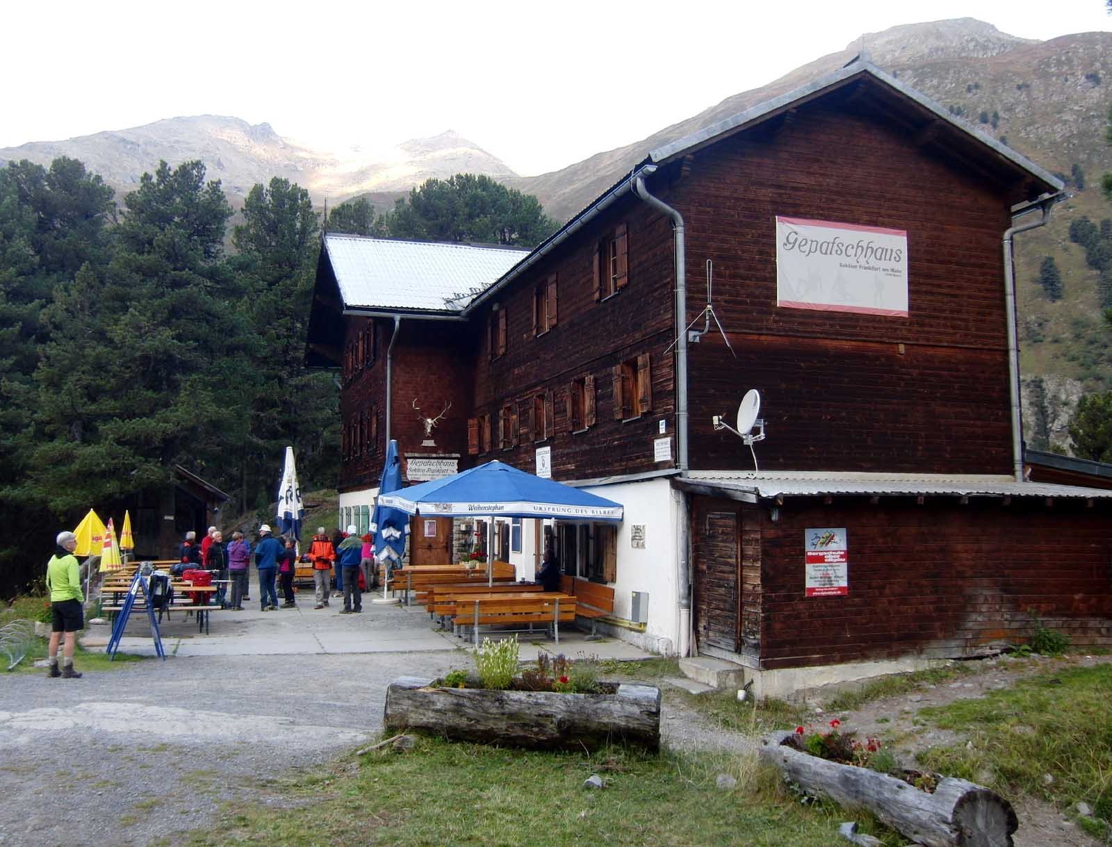 1) Dal rifugio Gepatschhaus seguire la strada Kaunertaler GletscherStrasse fino al secondo tornante (quello a sinistra) al di sopra della stazione bassa di partenza degli impianti Ochsenalbahn m. 2.170 (oppure volendo ridurre il lungo spostamento iniziale sulla strada, ma con percorso un po’ avventuroso, dal rifugio scendere sul sentiero al ponte dell’alpe Gepatsch Alm, attraversarlo ed appena al di sopra dell’alpe salire in una comba aperta senza sentiero, gradualmente spostarsi a sinistra nella rada pineta ed attraversare sempre a sinistra dei pendii abbastanza sostenuti, fino a raggiungere il terzo tornante verso nord della strada a quota 2.045, per poi proseguire sulla stessa, passare la zona di partenza degli impianti e raggiungere il secondo tornate al di sopra.