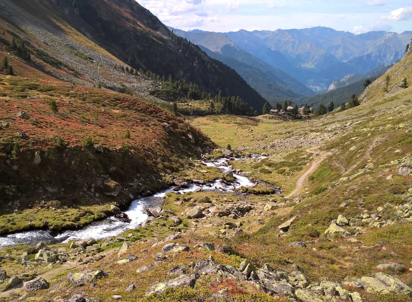 Discesa per lo stesso itinerario (nella parte bassa verso il rifugio, osservando bene è ancora possibile tagliare alcuni tornanti intermedi della strada, scendendo lungo le diverse scarpate, dove sono presenti tracce o meglio approfittare dell’eventuale coincidenza oraria del bus dalla fermata presso i Riffler Boden o meglio ancora se si è potuto salire in auto fino a questo punto).
