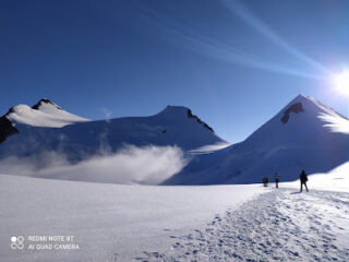 Condizioni ghiacciaio ottime, giornata soleggiata al mattino nuvoloso con pioggia/nevischio il pomeriggio