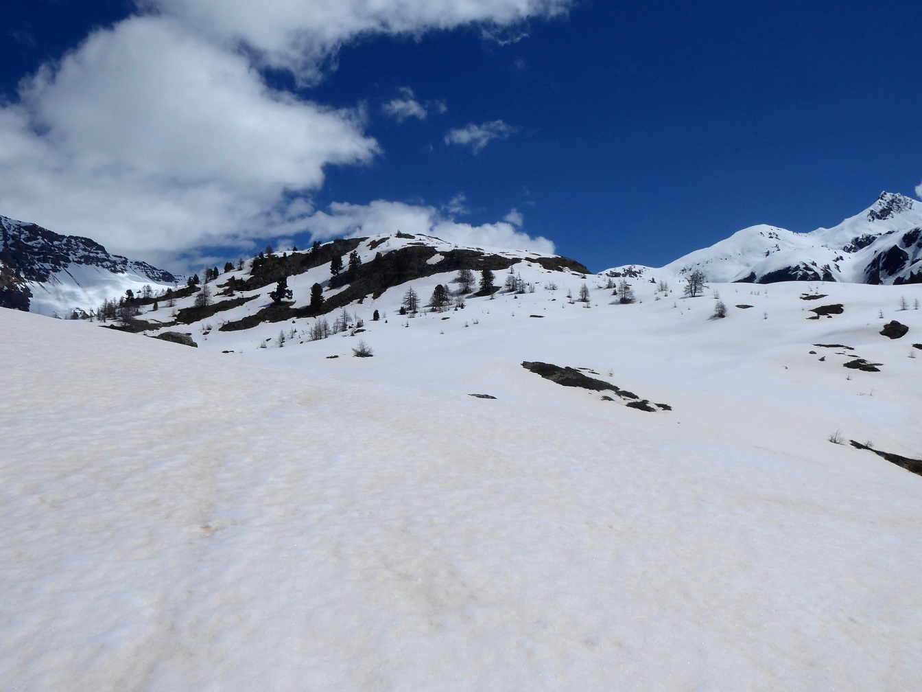 Poco dopo il vallone si apre decisamente, e si arriva alla piana erbosa con l’Alpe di Bardoney; poco prima di raggiungerla (è comunque una breve deviazione), si continua a destra per il sentiero che sale un dosso e poi aggira con ampio semicerchio la zona acquitrinosa del Plan des Goilles (volendo da qui, continuando a destra, si può salire il panoramico cucuzzolo della Tete des Goilles 2367 m.