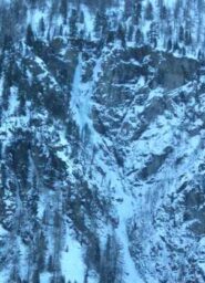 Primo tiro facile e bagnato. Sosta su ghiaccio. C’è un grosso masso sotto il quale si può fare una sosta comoda.
