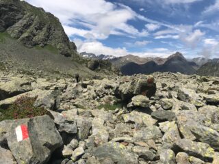 Il sentiero GTA 214 fino al Passo Paschiet è in ordine e ben tracciato; c’è un ultimo minuscolo nevaio poco prima del colle, con peste che consentono un passaggio sicuro.