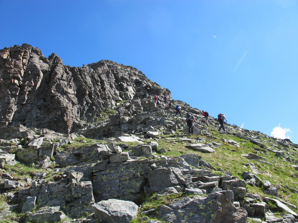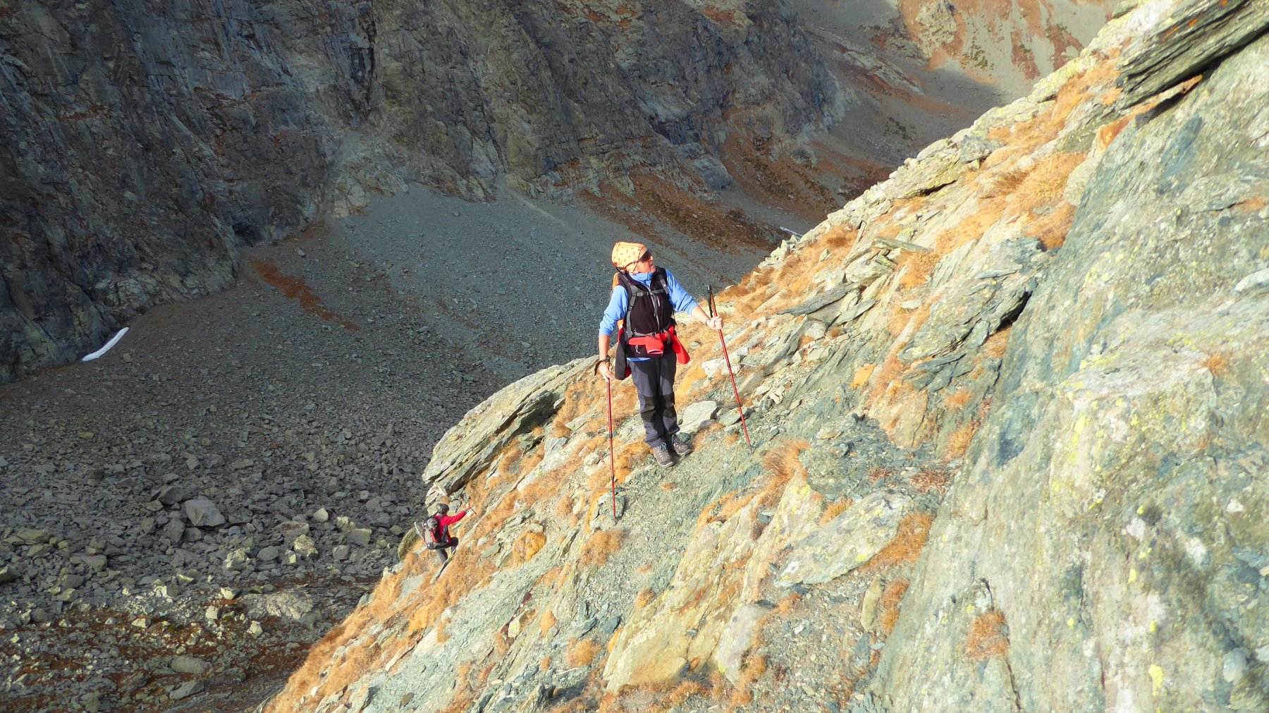 In prossimità della vetta il sentiero passa sul lato della Val d’Ala, raggiungendola su facili placconate.