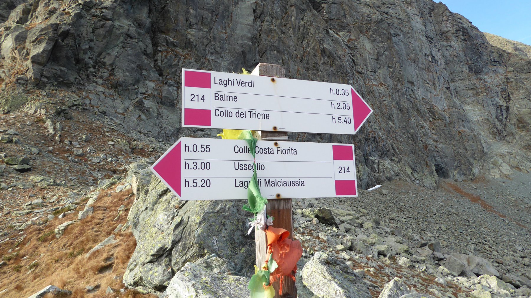 Il sentiero sale regolare per pascoli fino a un bel ripiano dove si incontra il sentiero proveniente da Usseglio (GTA) per il colle di Costafiorita.