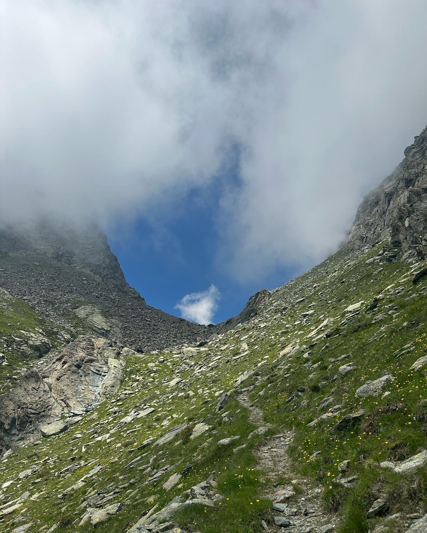 Dalla chiesetta di San Bartolomeo seguire la strada sterrata fino all’Alpe Grosso. Da qui, dietro l’alpeggio, inizia il sentiero(poco segnato) per il passo Paschiet (2435 m).