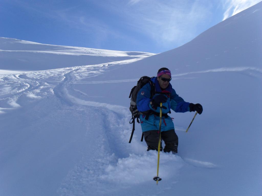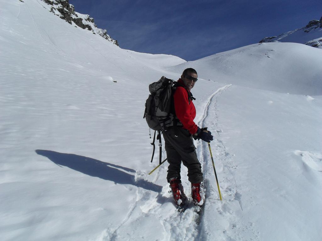 Magnifica discesa nel vallone di Sort, farina fino al ginocchio sciabilissima,sucessivamente un lungo e fitto bosco altrettanto entusiasmante ,con molti slalom in mezzo agli alberi ,neve un po’ piu pesantina in basso ma sempre sciabile ,con molta soddisfazione del mio compagno Luciano alla sua prima vera sciata alpinistica stagionale.