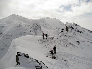 la meta originaria era il colle di sort a cui poi abbiamo rinunciato perchè sembrava poco innevata la parte finale. Per la verità anche sui primi 300 metri di discesa della spalla SO della Gollien occorre fare attenzione alle insidie delle pietre nascoste. Per il resto tutto bene, percorso ben tracciato; meno frequentata della vicina Entrelor. Con Teresa e Carlo&Carlo