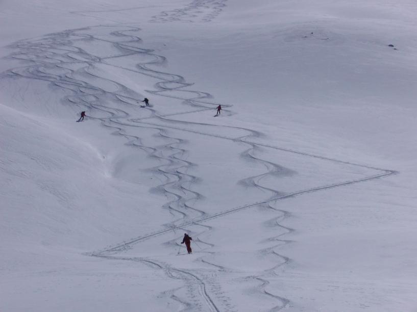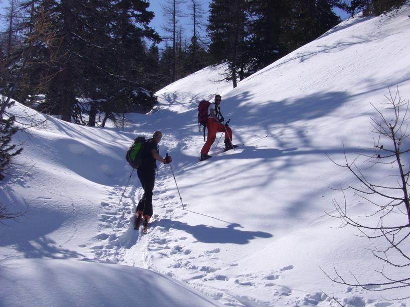 Buona sera a tutti.Per questa bella gita si debbono fare circa 400 metri di dislivello nella boschina, fortunatamente molto rada e piacevole da sciare.Poi si esce su bei pendii molto carichi ma non pericolosi. Abbiamo sentito assestamenti nella parte terminale e quindi ci siamo fermati prima della cima. Neve farinosa su tutto il percorso. Consigliabile. Buone gite.