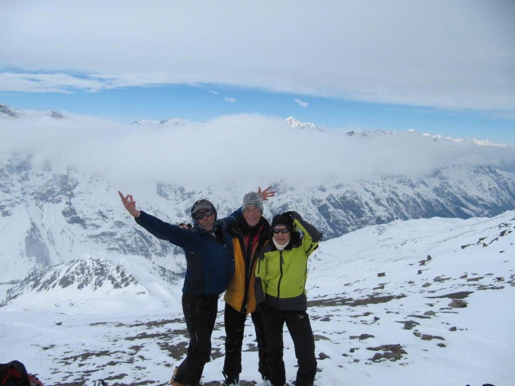 previsioni meteo rispettate, cielo sereno alla partenza, giornata gelida, meno 16 alla partenza. dapprima cielo velato, poi prime nuvole verso fine mattinata ed infine cielo coperto. scarsa presenza di scialpinisti. buon innevamento su tutto il percorso, eccetto gli ultimi 30 metri dove occorre prestare attenzione alle pietre affioranti e soprattutto a quelle che non si vedono perchè coperte da pochi cm di neve. in discesa parte alta molto segnata dai tanti passaggi, ma ancora ben sciabile. meno bella la parte boschiva completamente segnata. con teresa e carlo.