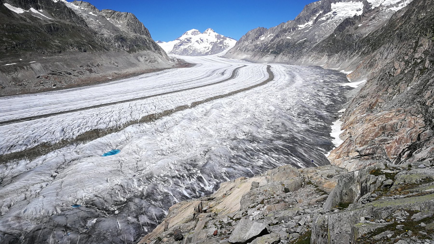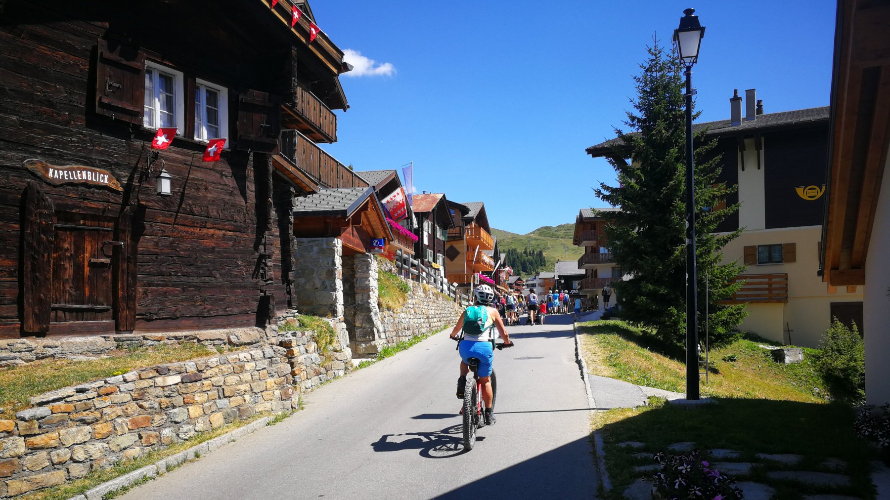 Giro decisamente di rilievo all’interno della valle di Goms, nell’alto vallese, con massima escursione ai margini del ghiacciaio dell’Aletsch. Questo famoso ghiacciaio è parte della regione Jungfrau-Aletsch-Bietschhorn, primo sito dell’arco alpino ad essere inserito, dal 2001, nella lista del patrimonio mondiale dell’UNESCO. L’itinerario ha inizio dall’abitato di Moerel e risale dapprima su strada asfaltata a ridotta percorrenza veicolare e successivamente su prevalente strada dal fondo sterrato fino a giungere in prossimità dell’abitato di Riederalp (varie frazioni), quota 1.900 mt. Da qui ha inizio un lungo percorso sull’altopiano prativo, paradiso invernale dello sci. Nella prima parte il fondo è su asfalto in leggera salita fino a Bettmeralp da cui ha inizio un tratto sterrato che si caratterizza inizialmente per alcuni tratti in ascesa molto impegnativi che conducono ai 2.177 mt della Furri Huette e da li a poco a Kuehboden-Fiescheralp, con temporaneo ritrovo del tratto in asfalto. Si abbandona quasi immediatamente l’asfalto Uscendo dall’abitato per tuffarsi nell’ultimo tratto di strada sterrata che condurrà in ca 3 km all’imbocco del tunnel (quota 2.336) sotto il Taelligrat, poco dopo la località Obers Taelli. La percorrenza del tunnel, interamente ciclabile, richiede alcuni minuti ed all’uscita prendendo a sinistra in discesa un sentiero praticamente interamente ciclabile e con alta affluenza pedonale si giunge rapidamente ai margini dell’imponente ghiacciaio dell’Aletsch ove risaltano le caratteristiche lingue nere di detriti al suo interno. Il ritorno ha luogo per il medesimo sentiero, a tratti molto più difficoltoso da pedalare interamente, fino a giungere in prossimità dell’imbocco del tunnel. A questo punto si costeggia il Vordersee e successivamente, evitando la traccia per downhill che scende in Fischertal, si tiene la destra su un sentiero (inizialmente in salita e successivamente in decisa discesa) che aggirando il Taelligrat andrà a ricongiungersi per un brevissimo tratto (ca 20 metri) con la sterrata dell’ascesa. Prendendo una traccia sulla sinistra (aggiornamento settembre 2014: è stata costruita una ampia pista che scende in direzione fondovalle, presenti evidenti indicazioni segnaletiche recanti “Fiesch/Gogwärgiweg”) inizia una lunga ed a tratti molto impegnativa discesa verso Fiesch, dapprima su strada prativa e successivamente su sentiero boschivo molto accidentato (il sentiero attraversa in diversi punti un tracciato di downhill per cui è bene seguire strettamente la traccia GPS). Giunti all’abitato di Fiesch la strada asfaltata di fondovalle condurrà a Morel (quasi interamente in discesa)