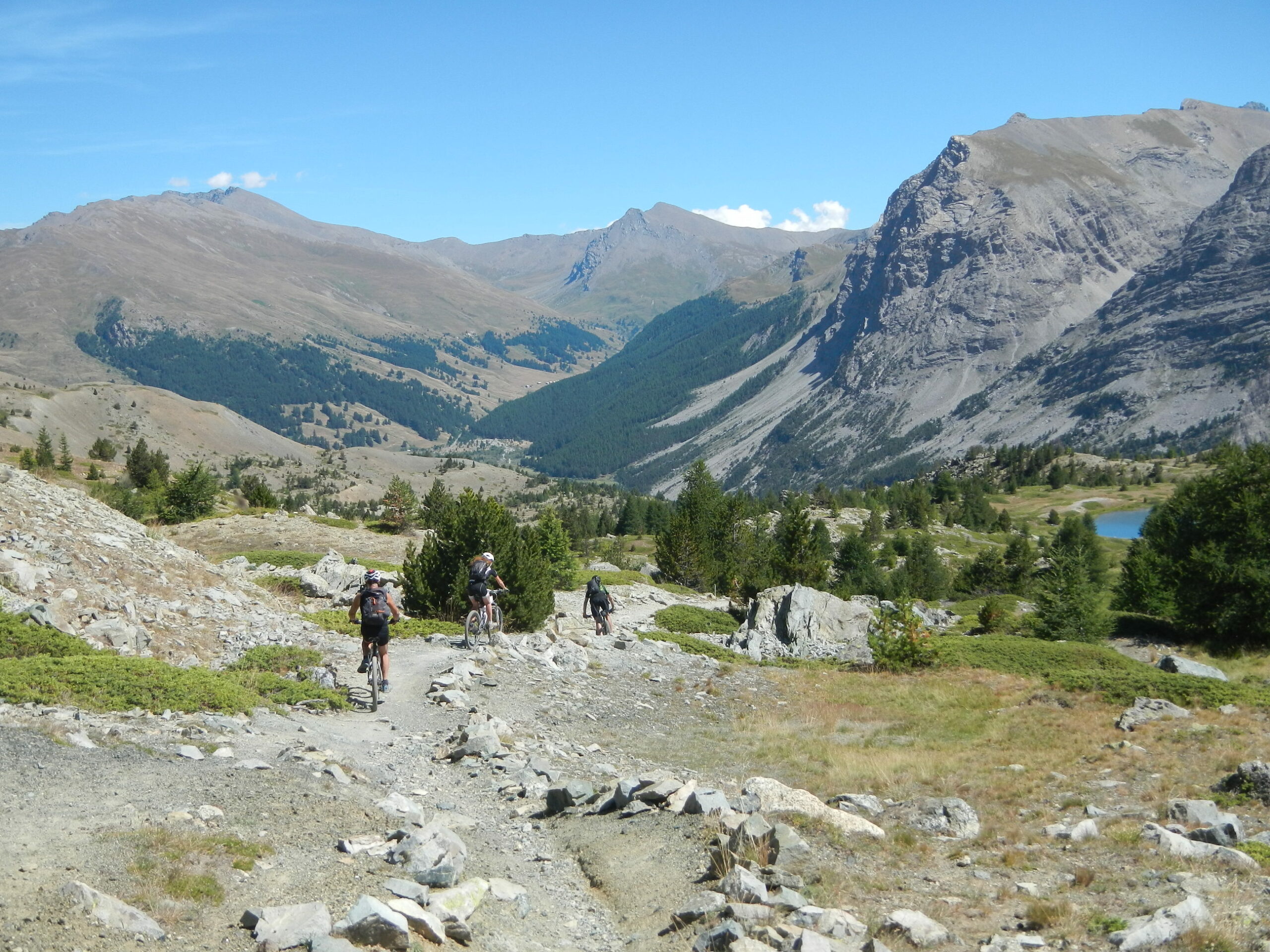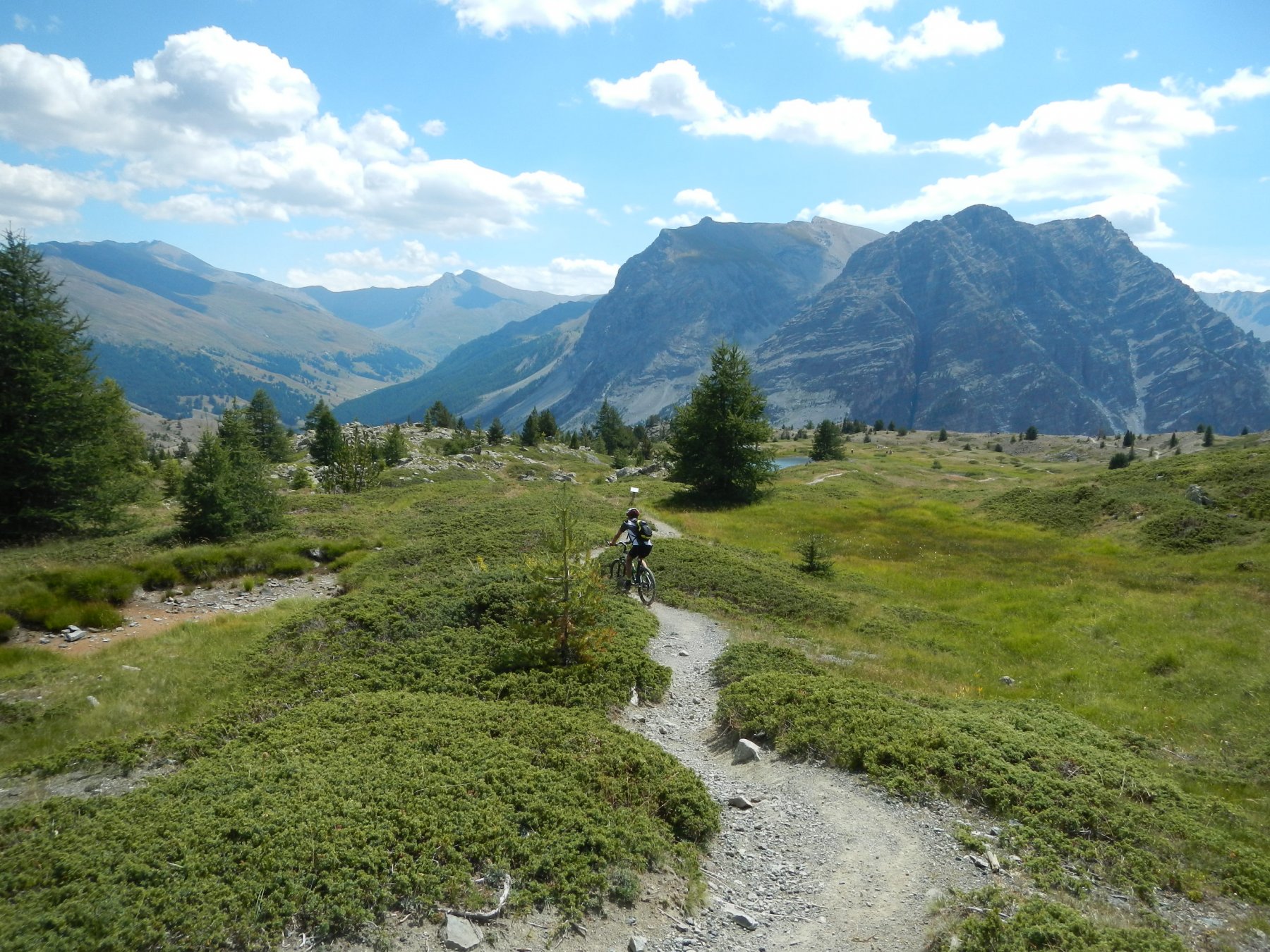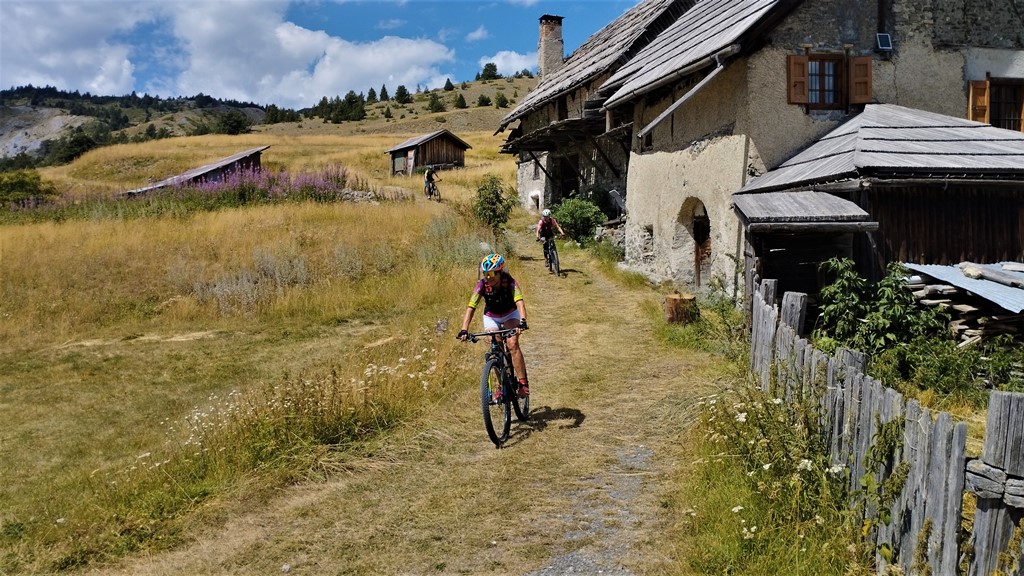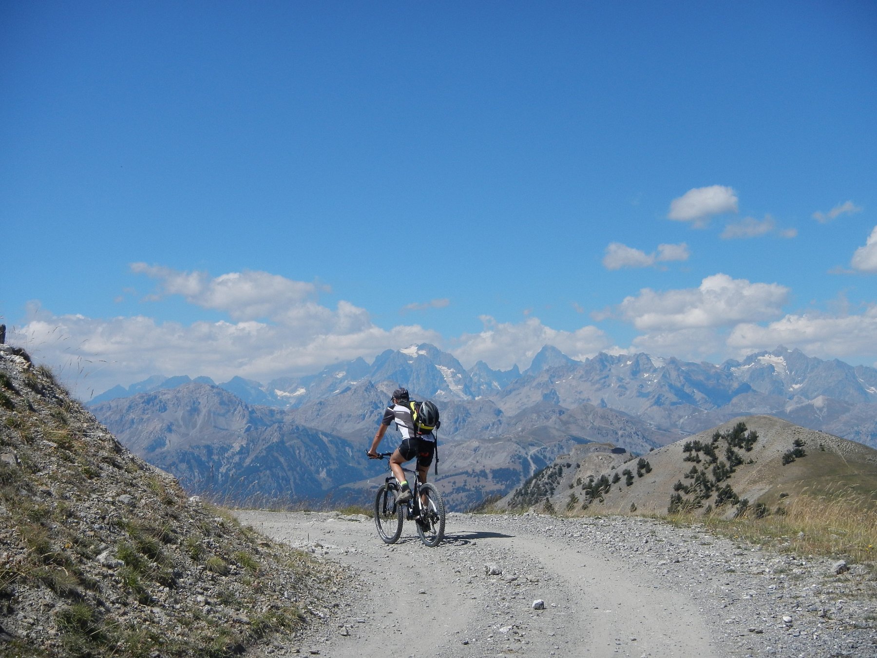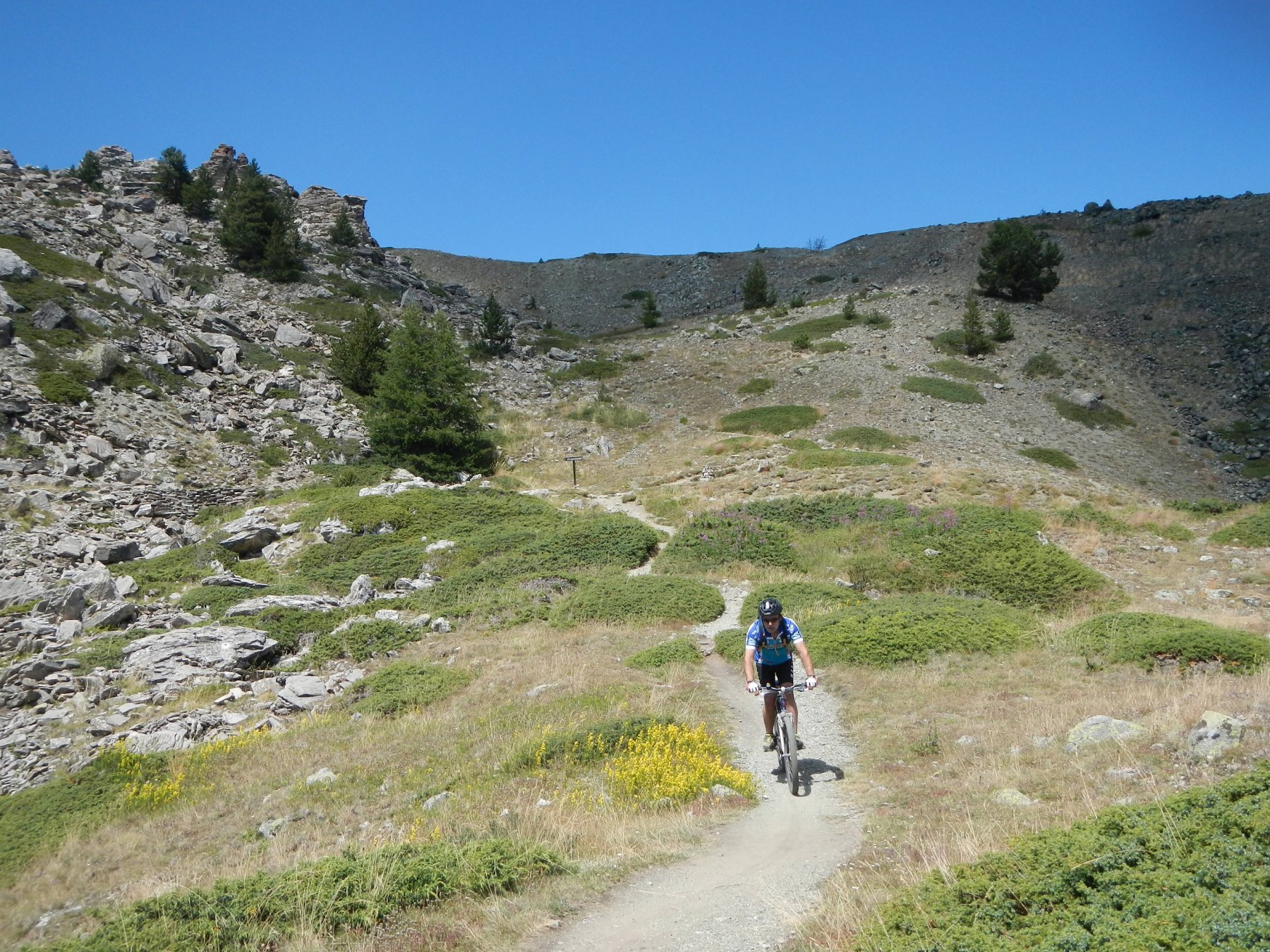 Dal piazzale del Fort du Gondrand si torna indietro per qualche centinaio di metri e si imbocca sulla sinistra uno sterrato in discesa che procede in direzione Est sullo spartiacque tra il versante di Cervieres e quello di Monginevro. Dopo un paio di Km si giunge al piccolo Lac de Sagne Enfonza (2315 m). Qui si imbocca sulla destra un bellissimo sentiero che scende tra i prati, costeggia sulla destra il bellissimo Lac des Sarailles e, dopo un breve tratto difficilmente ciclabile (100 m lineari circa), arriva ad un incrocio (quota 2200 m). Qui si prosegue dritto seguendo sempre le indicazioni per Cervieres. Il sentiero è sempre ampio e ben evidente e ciclabile praticamente al 100%, e termina a La Chau (1900 m circa), dove si raggiunge la strada che percorre il Vallone di Les Fonts. Si svolta a destra e in circa 5 Km di veloce discesa, in gran parte su sterrato, si ritorna a Cervieres.