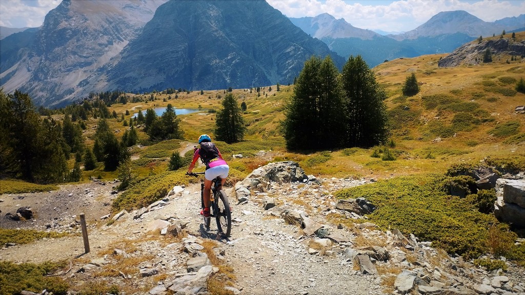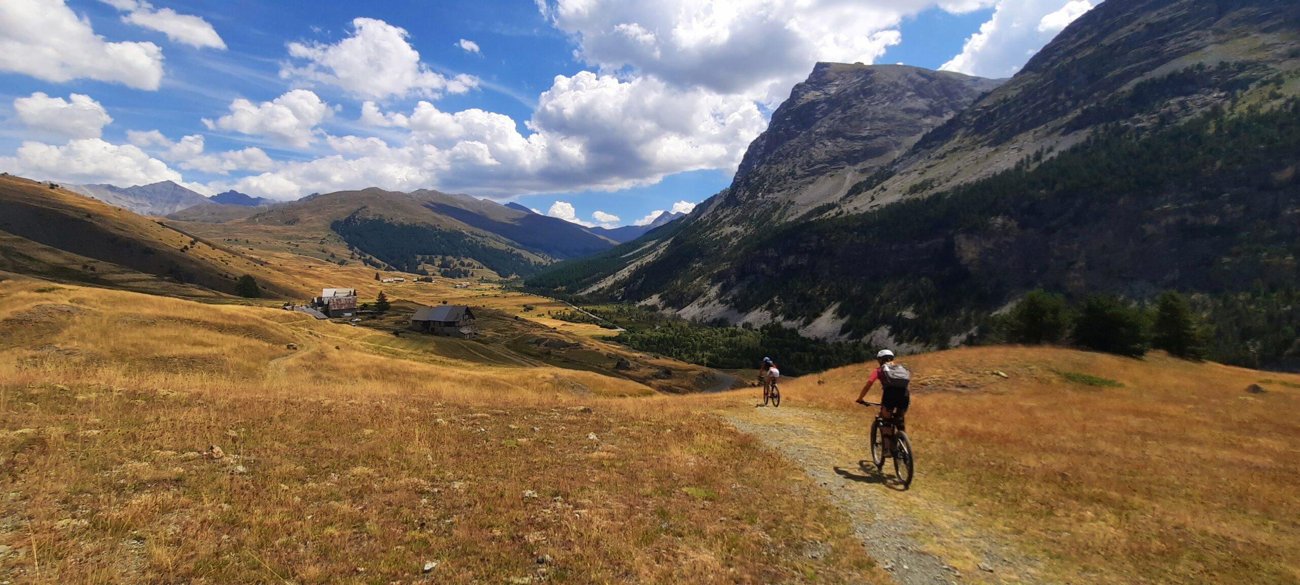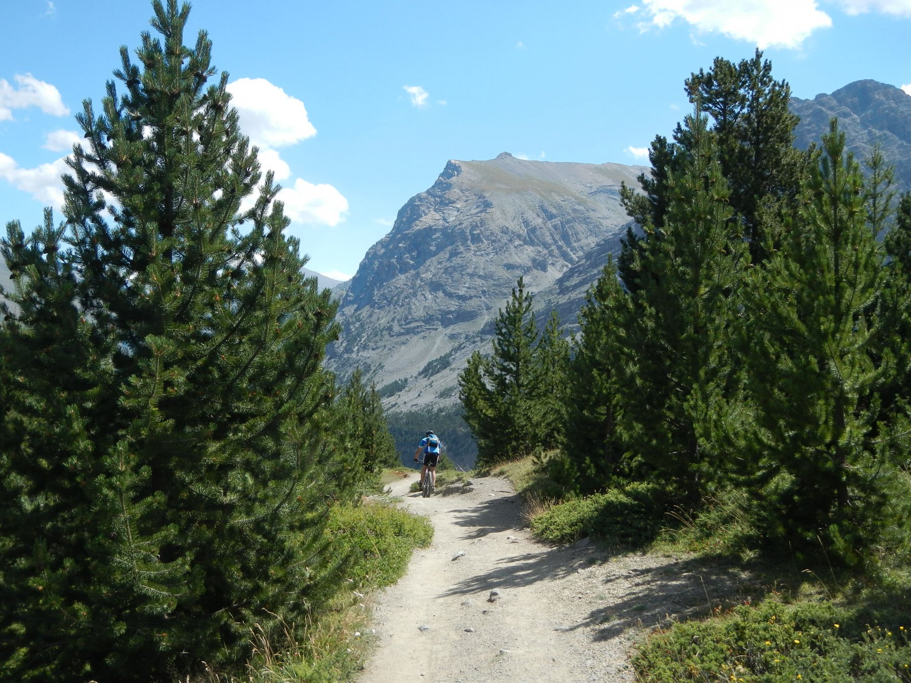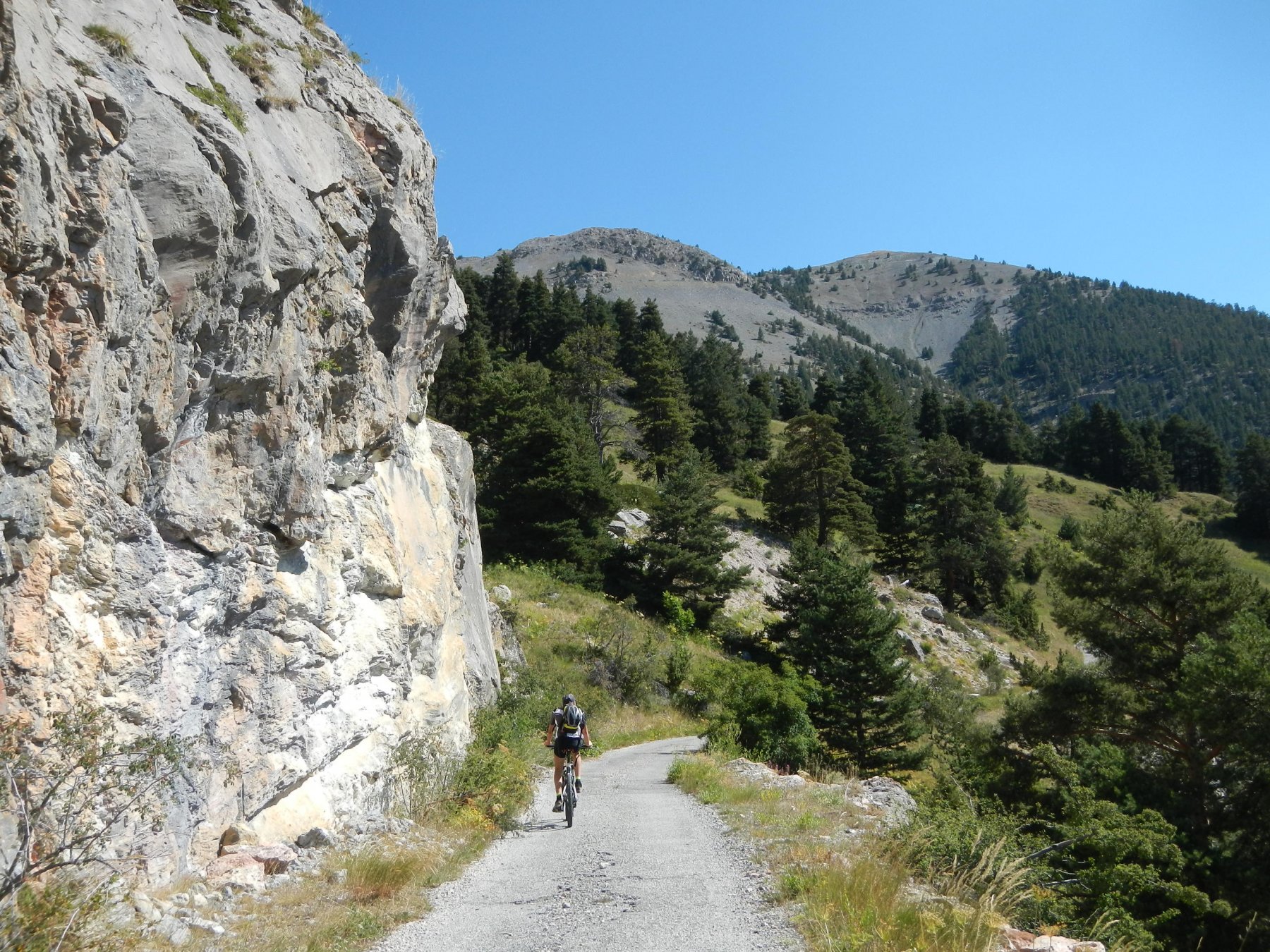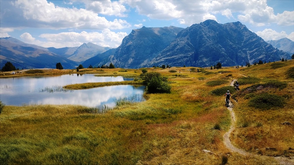 Dal piazzale del Fort du Gondrand si torna indietro per qualche centinaio di metri e si imbocca sulla sinistra uno sterrato in discesa che procede in direzione Est sullo spartiacque tra il versante di Cervieres e quello di Monginevro. Dopo un paio di Km si giunge al piccolo Lac de Sagne Enfonza (2315 m). Qui si imbocca sulla destra un bellissimo sentiero che scende tra i prati, costeggia sulla destra il bellissimo Lac des Sarailles e, dopo un breve tratto difficilmente ciclabile (100 m lineari circa), arriva ad un incrocio (quota 2200 m). Qui si prosegue dritto seguendo sempre le indicazioni per Cervieres. Il sentiero è sempre ampio e ben evidente e ciclabile praticamente al 100%, e termina a La Chau (1900 m circa), dove si raggiunge la strada che percorre il Vallone di Les Fonts. Si svolta a destra e in circa 5 Km di veloce discesa, in gran parte su sterrato, si ritorna a Cervieres.