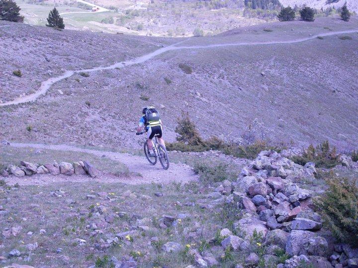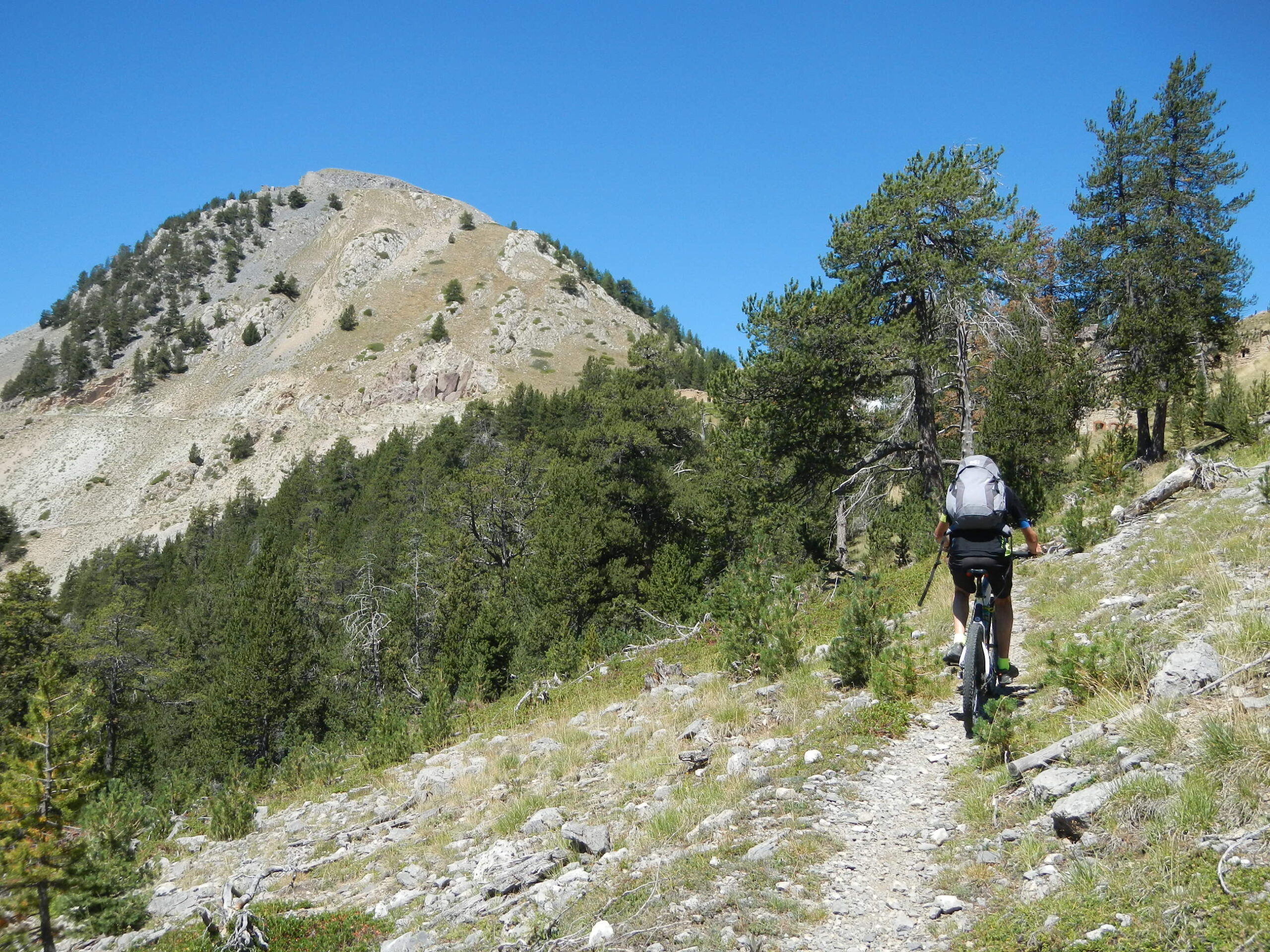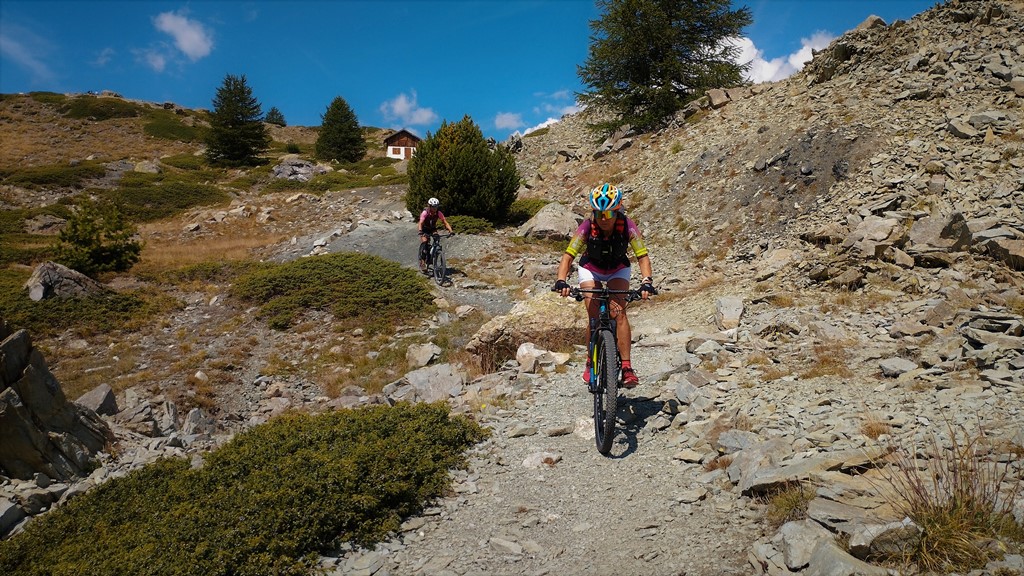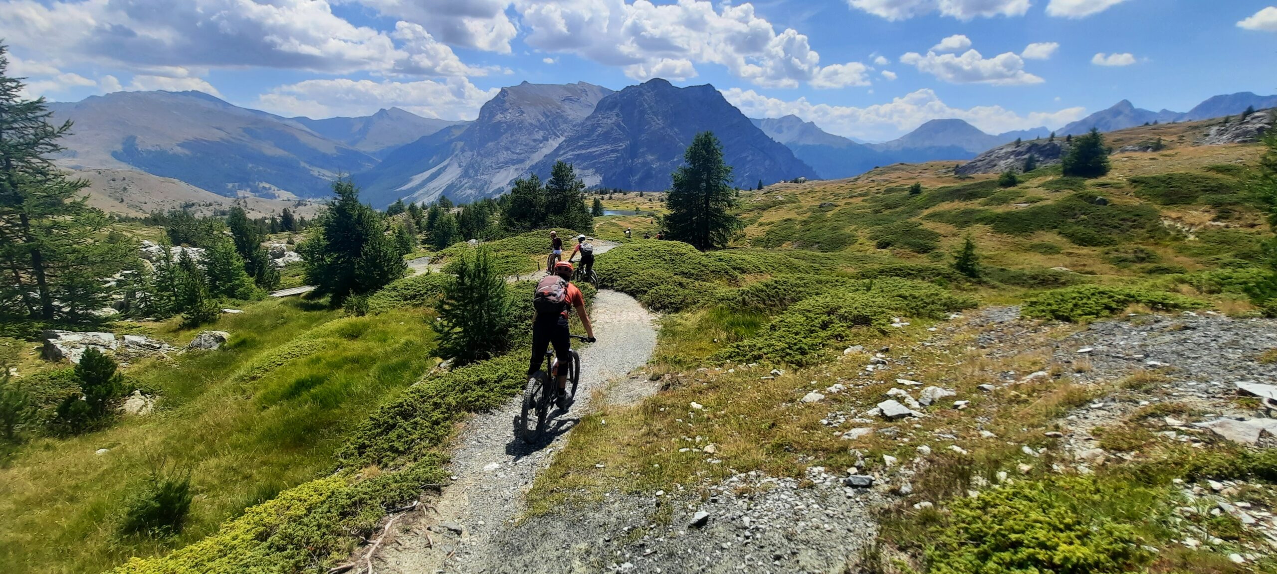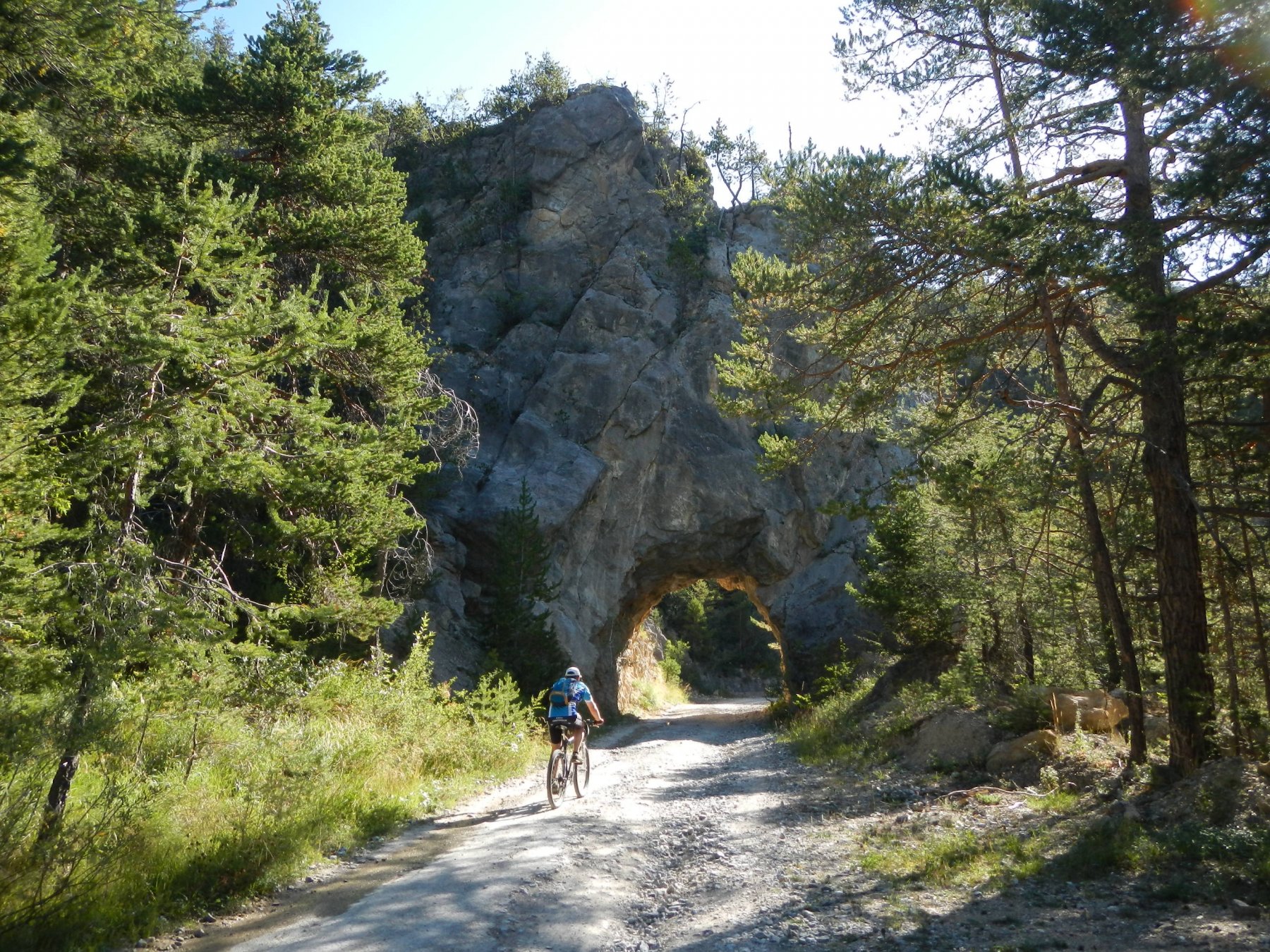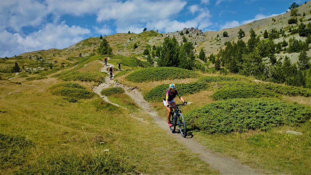 Dal piazzale del Fort du Gondrand si torna indietro per qualche centinaio di metri e si imbocca sulla sinistra uno sterrato in discesa che procede in direzione Est sullo spartiacque tra il versante di Cervieres e quello di Monginevro. Dopo un paio di Km si giunge al piccolo Lac de Sagne Enfonza (2315 m). Qui si imbocca sulla destra un bellissimo sentiero che scende tra i prati, costeggia sulla destra il bellissimo Lac des Sarailles e, dopo un breve tratto difficilmente ciclabile (100 m lineari circa), arriva ad un incrocio (quota 2200 m). Qui si prosegue dritto seguendo sempre le indicazioni per Cervieres. Il sentiero è sempre ampio e ben evidente e ciclabile praticamente al 100%, e termina a La Chau (1900 m circa), dove si raggiunge la strada che percorre il Vallone di Les Fonts. Si svolta a destra e in circa 5 Km di veloce discesa, in gran parte su sterrato, si ritorna a Cervieres.