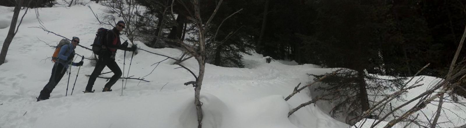 Lunga ciaspolata su traccia bivalente, non “molla” mai, io mi sono fermato alla baita in rovina quotata 2079 metri (sopra quella del Petit Nomenon) avvicinandomi ai 1000 metri di dislivello ,i miei compagni hanno raggiunto la meta.